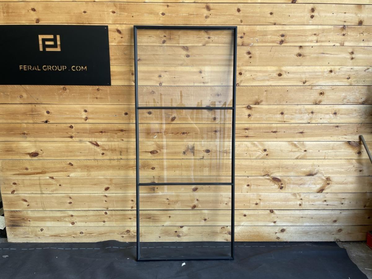 Extra informatie: gezandstraald, poederlak, gelaagd veiligheidsglas 33.2, Afgewerkt met zwarte stopverf aan beide zijden, Alle onderverdelingen zijn gelast.