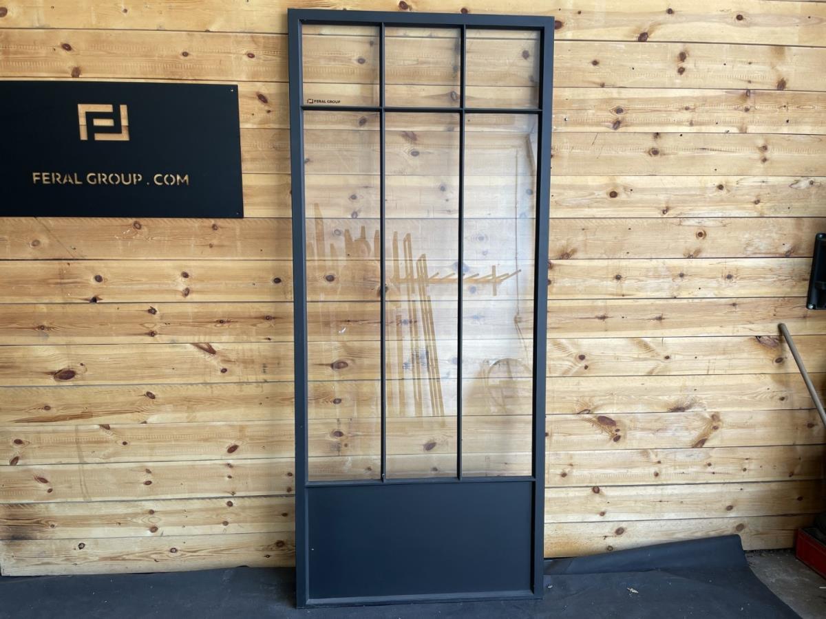 Extra informatie: gezandstraald, poederlak, gelaagd veiligheidsglas 33.2, Afgewerkt met zwarte stopverf aan beide zijden, Alle onderverdelingen zijn gelast.
