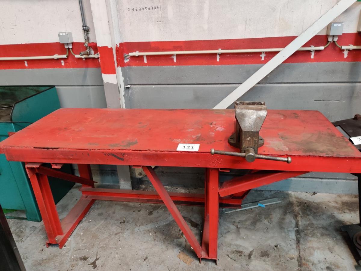 Kavelnummer 121: Metalen werktafel met bankvijs