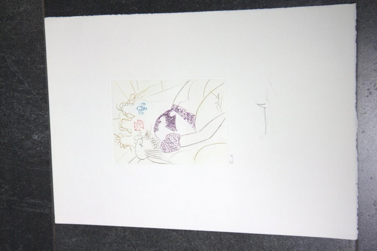 Originele gekleurde ets op BFK Rives vellum papier