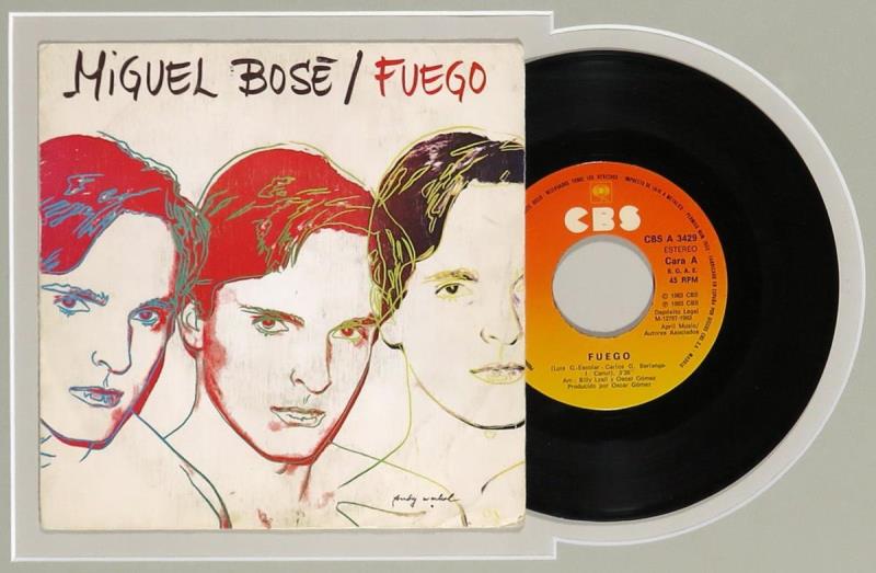 7'' single Fuego van Miguel Bosé, met een door Andy Warhol ontworpen hoes.