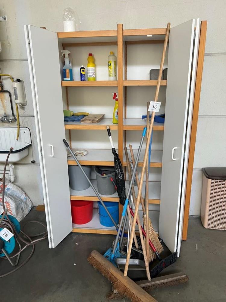Kavelnummer 36: 1 Houten kast inhoudende divers schoonmaakgerief