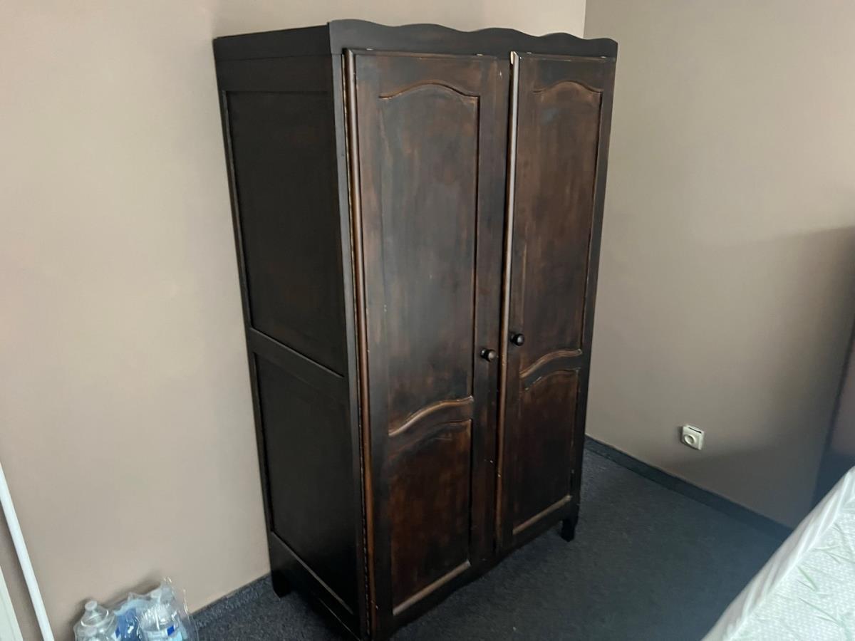 Bestaande uit: 1 dubbelbed, 1 houten dressoir, 1 houten kleerkast, 1 nachtkastje en 1 kapstok systeem.