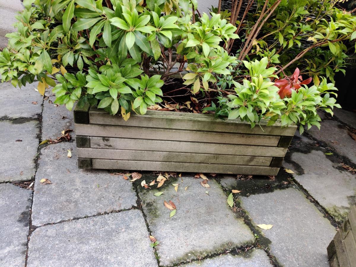 Kavelnummer 10: 2 Houten plantenbakken met plant