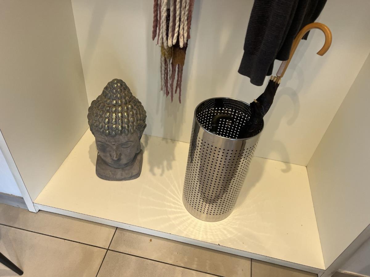 incl 2 ronde bijzettafeltjes, paraplubak + deco