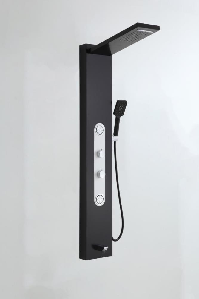 1x rvs douchepaneel, model: 5618 zwart matt, functies: 1xbodyjets, 1xhoofddouche, 1xhanddouche, 1x voetwaterval, 1x hoofdwaterval, mengkraan, flexibele slang 150cm, afm. 150x22cm (hxb), dit betreft een nieuw product in doos.