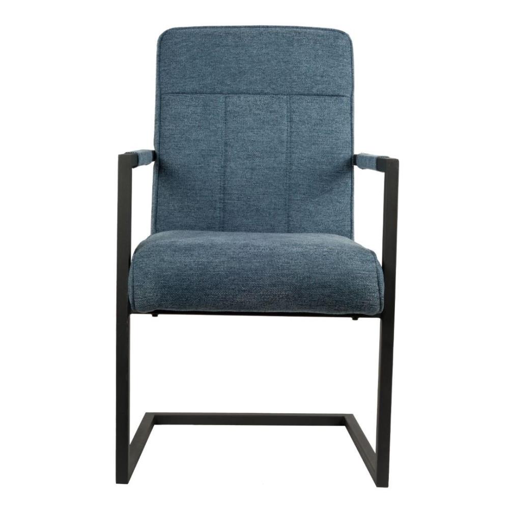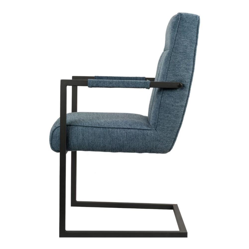 4x Modern eetkamerstoel met armleuning, kleur: Blauw, weave stof, zwart gecoat en verzwaard onderstel