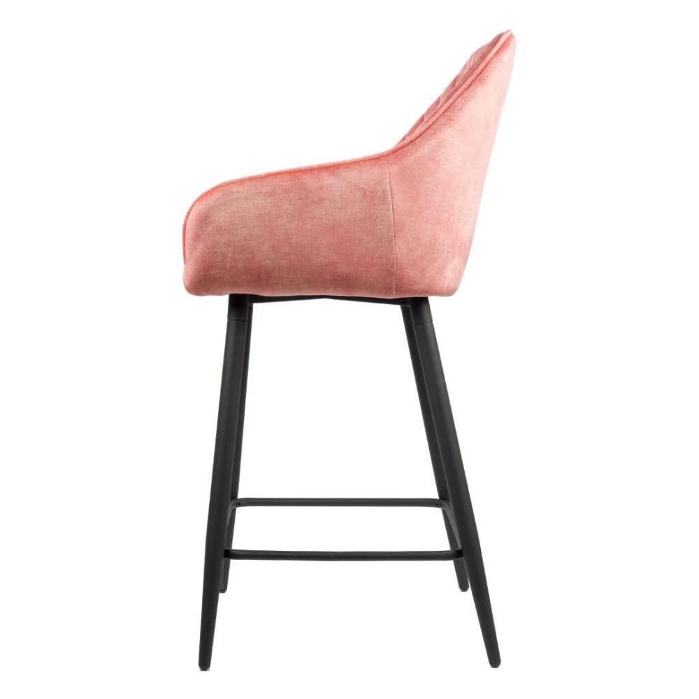 4x Design barkruk, Model: 9170-219, Kleur: roos, geruit velvet stof, gecoat onderstel