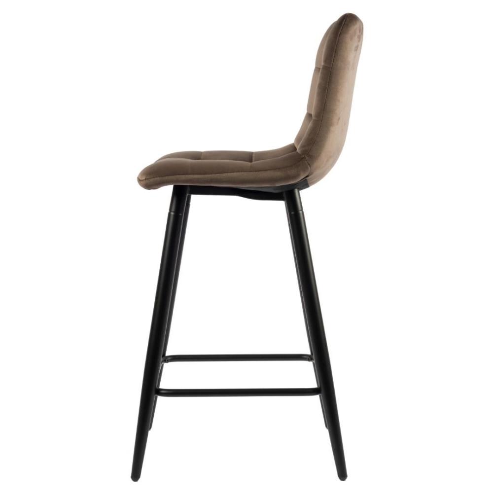 4x Design barkruk, Model: 8078-38low, Kleur: bruin, velvet stof, gecoat onderstel