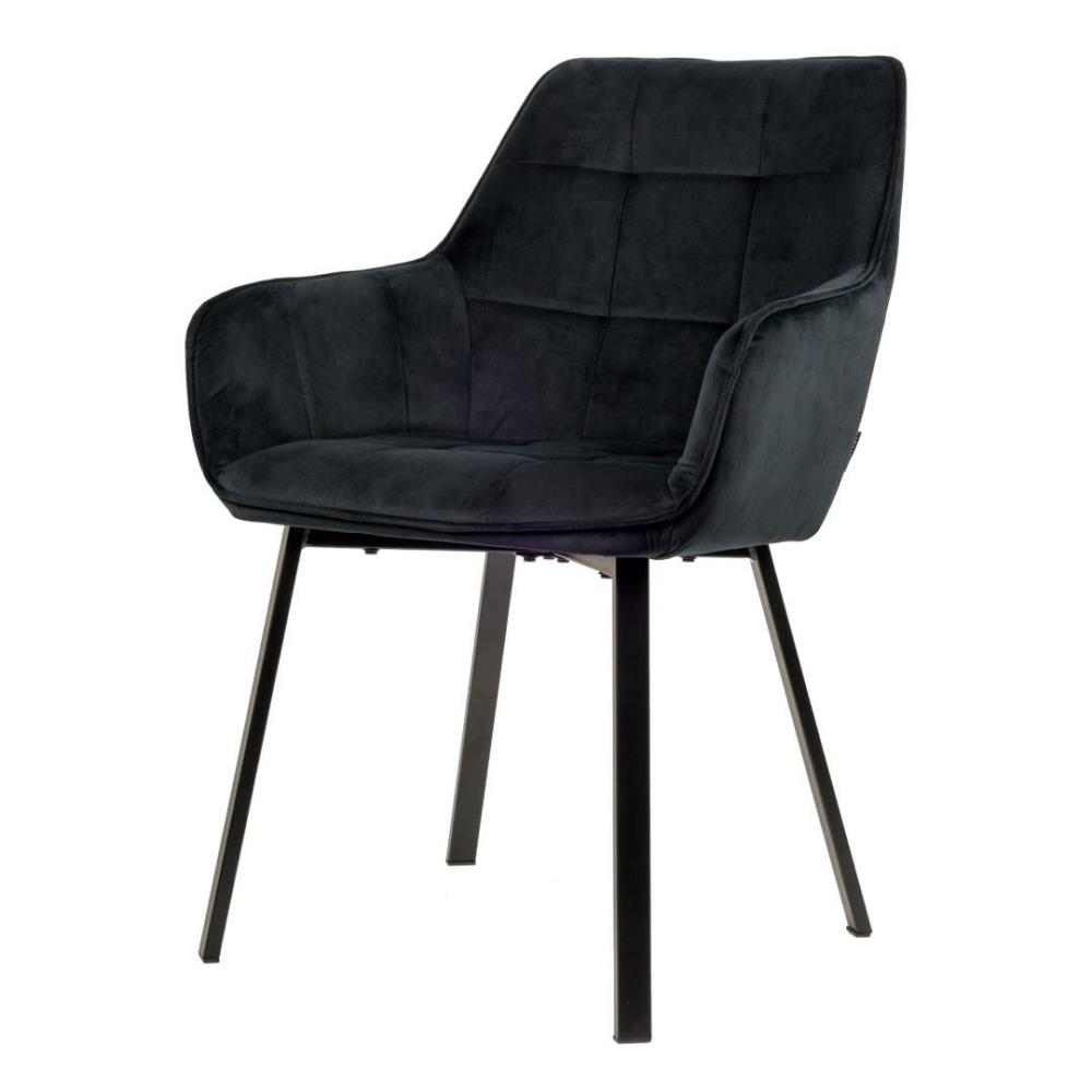 6x Design eetkamerstoelen, model: 21002-77, kleur: zwart, velvet stof, kuipstoel met verzwaard en gecoat onderstel