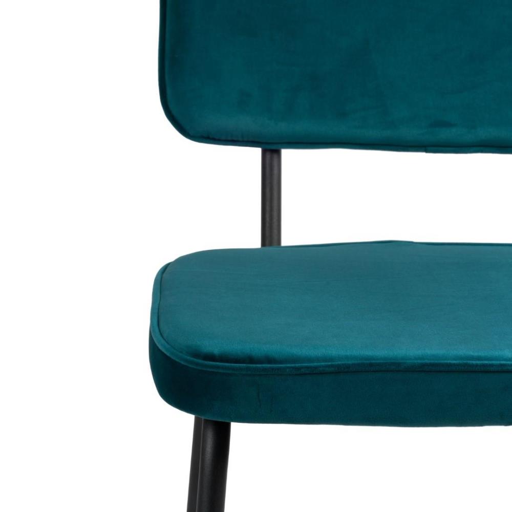 6x grijze eetkamerstoel, model: Joe-16, kleur: petrol groen, velvet stof, zitvlak met extra foam kussen, gecoat en verzwaard onderstel