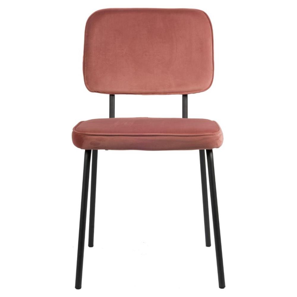 6x grijze eetkamerstoel, model: Joe-08, kleur: roos, velvet stof, zitvlak met extra foam kussen, gecoat en verzwaard onderstel
