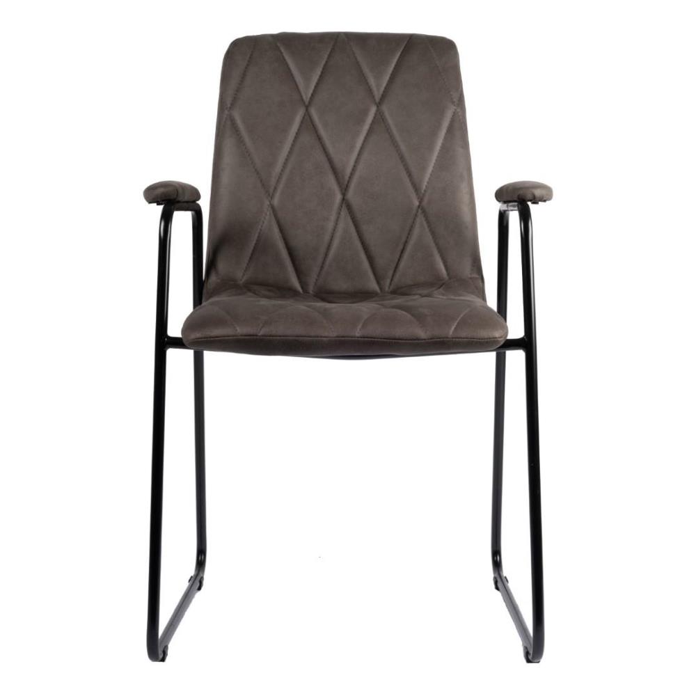 6x eetkamerstoel 8203-08, kleur: grijs, cowboy stof, slee poot, bekleed armleuning, geruit gestikt;