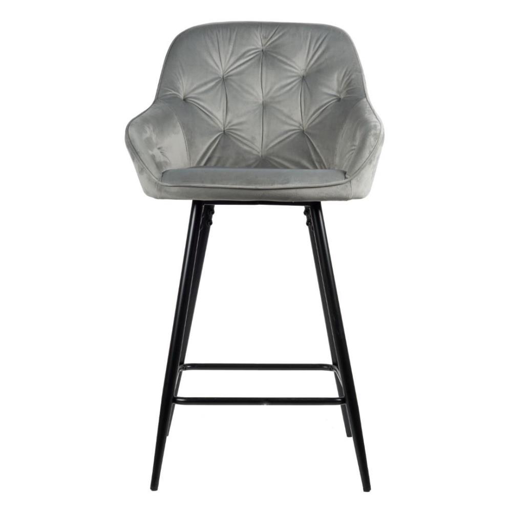 4x Design barkruk, Model: 9124-110, Kleur: grijs, geruit velvet stof, gecoat onderstel