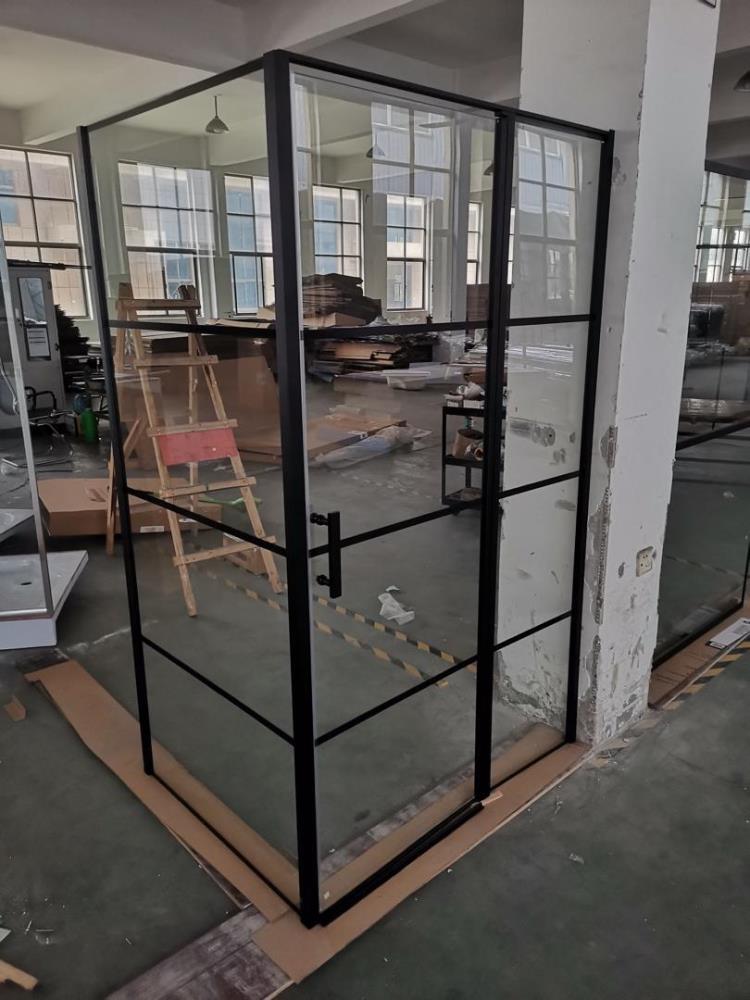 1 DOUCHECABINE SC-42 DESIGN INLOOPDOUCHE ZWART MET RASTER KAN LINKS OF RECHTS VAN DE MUUR PLAATSEN AFM 900X1200X1950 ZWART ALU FRAME 6mm veiligheidsglas, kan op de vloer of op een douchebak gemonteerd worden (geleverd zonder douchebak) winkelwaarde 1450€ liggend in een doos LOCATIE: magazijn OMKEERBAAR LH OF RH KANT