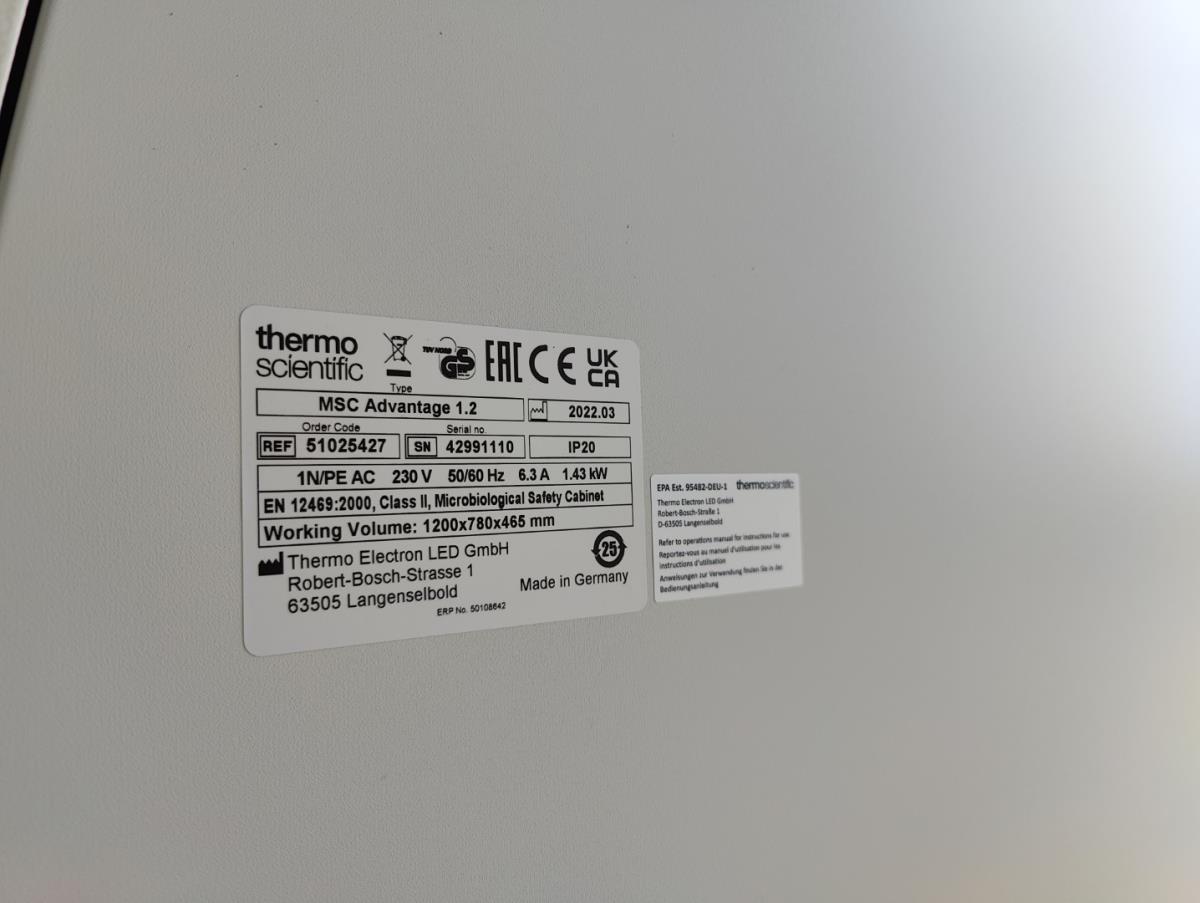Kavelnummer 2: 1 Biologische veiligheidscabines THERMO SCIENTIFIC MSC-ADVANTAGE 1.2 NP:€ 8800
