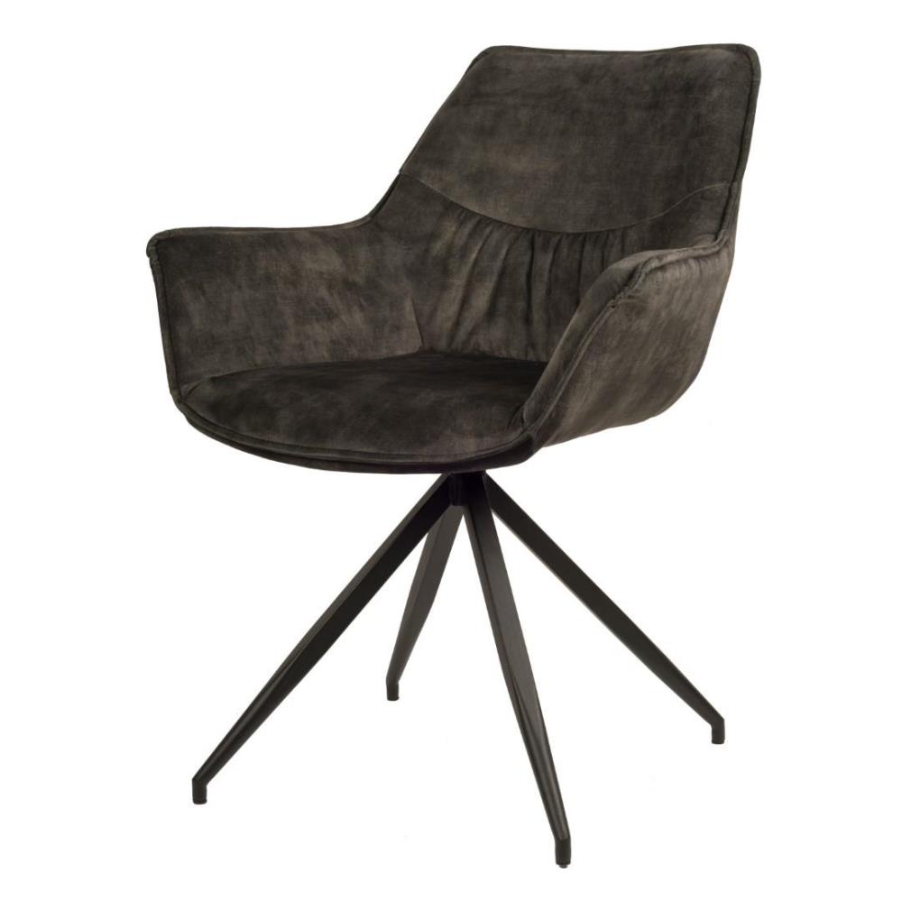 6x Design eetkamerstoel, model: 2077-17, kleur: groen, velvet stof, verzwaard draaibaar onderstel