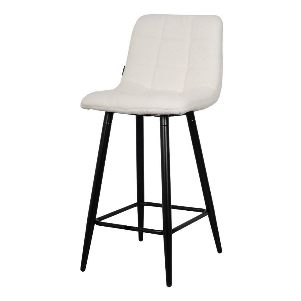 4x Design barkruk, model: 8078-99201, kleur: wit, teddy stof, gecoat en verzwaard onderstel
