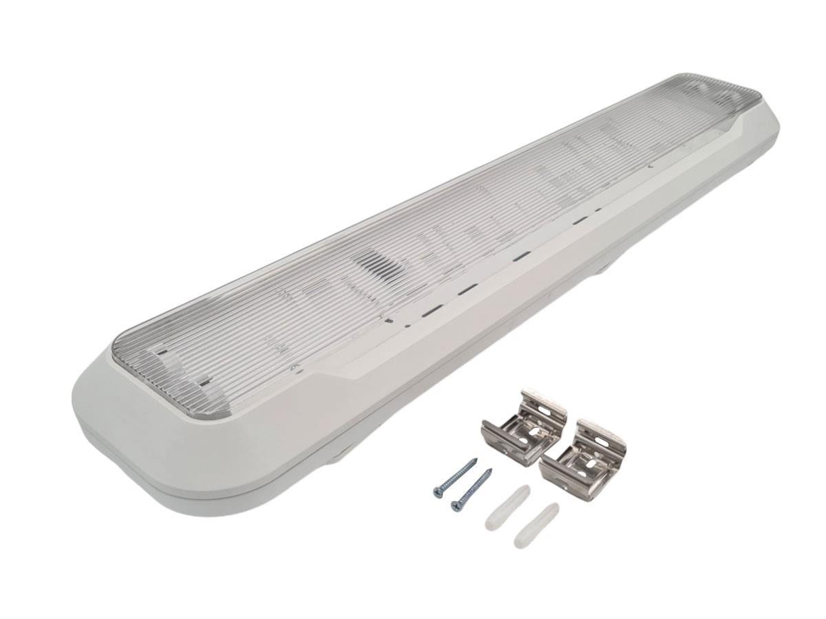 8 x 120cm Pro Design dubbele LED TL T8 armaturen waterdicht wit met reflector - IP65 waterdicht - product kleur wit - afm. 1289 x 138 x 84mm - materiaal PC & ijzer reflector - bevestigingsset inclusief - twee T8 Tube invoer - LED TL Tube niet inbegrepen - voltage 220-240V - een zijde L N aansluiting - max 36 watt - SKU 00652