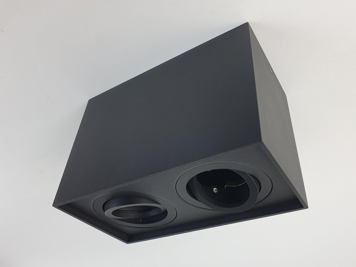 10 x GU10 Opbouwspot Armatuur rechthoekig dual fittingen zand zwart kantelbaar - afdichting IP20 - product kleur zand zwart - afm. 180 x 96 x 125mm - bevestiging inclusief - materiaal aluminium - fitting GU10 - bulb niet inbegrepen - geschikt voor binnen - 2 x bulb invoer - voltage 220-240V - SKU 00345