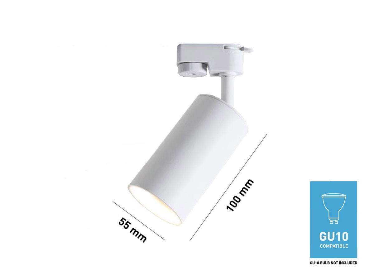 10 x Railspot GU10 Armatuur cilinder zand wit draaibaar - geschikt voor 1 fase 2 draad rail - afdichting IP20 - product kleur zand wit - afm. Ø 55 x 100mm - draaibaar 350° en kantelbaar 90° - materiaal aluminum en PC - bevestiging inclusief - fitting GU10 - bulb en rail niet inbegrepen - geschikt voor binnen - een bulb invoer - voltage 220-240V - max 35 watt - SKU 00533