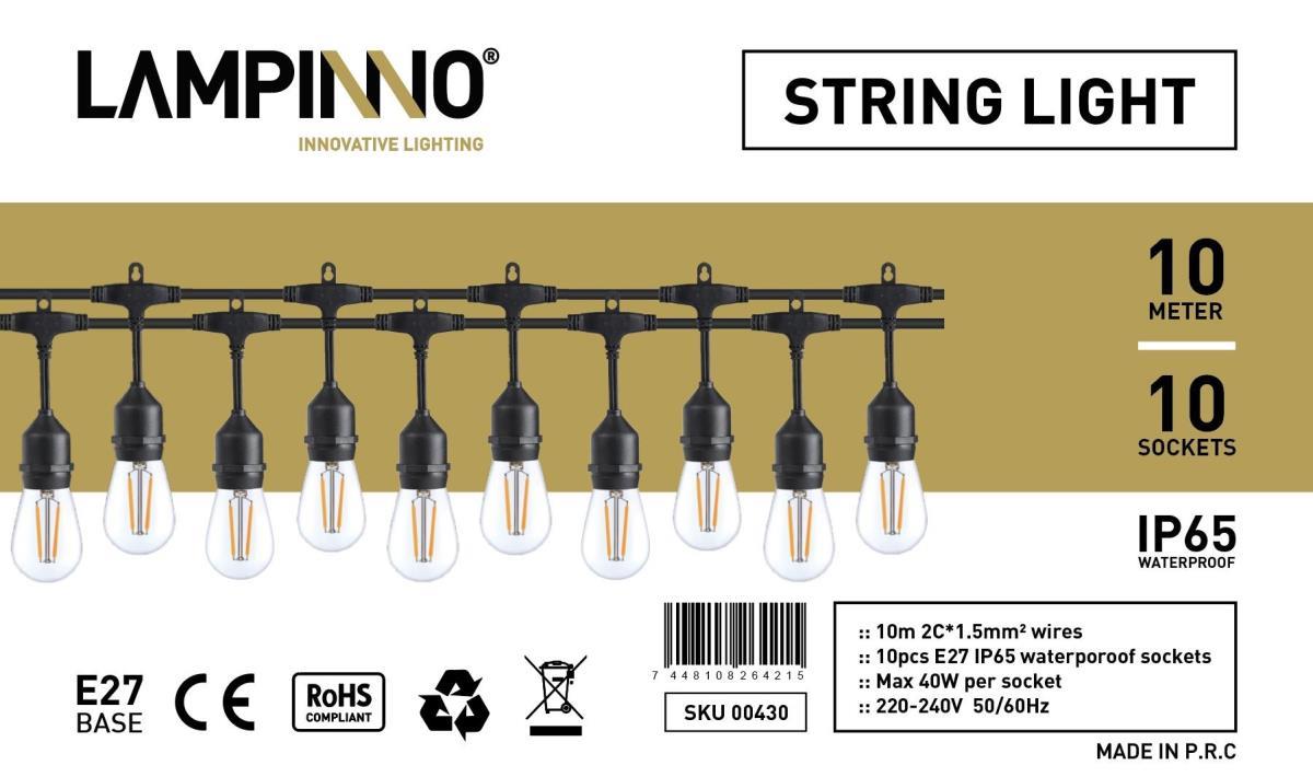 5 x 10 meter zwarte prikkabel met 10 stuks E27 fittingen - 2C x 1.5mm - IP65 waterdicht - met snoer en stekker - verlengbaar met contrastekker en prikkabels kunnen elkaar gekoppeld worden - Partyverlichting feestverlichting voor binnen en buiten - lampen niet inclusief - SKU 430