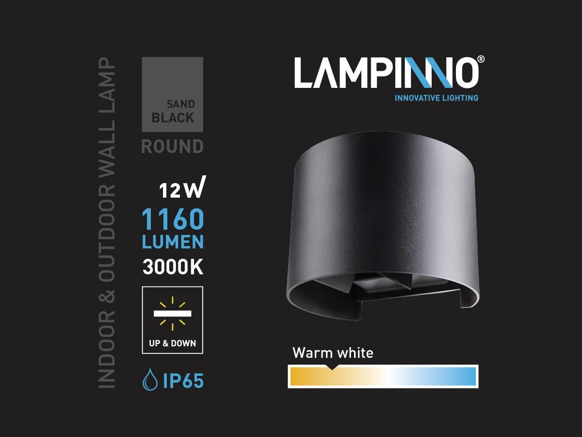 4 x 12 watt 2x6W LED zand zwart rond duo licht verstelbaar waterdicht - afdichting IP65 waterdicht - verstelbare hoek van de lichtbundels - lichtkleur 3000K warm wit - lichtstroom 1160 lumen - COB LED - materiaal aluminium - boven en onder verlichting - afm. Ø 140mm x 120mm x 100mm - voltage 220-240V - bevestiging inclusief - geschikt voor binnen en buiten - SKU 00978