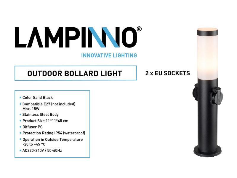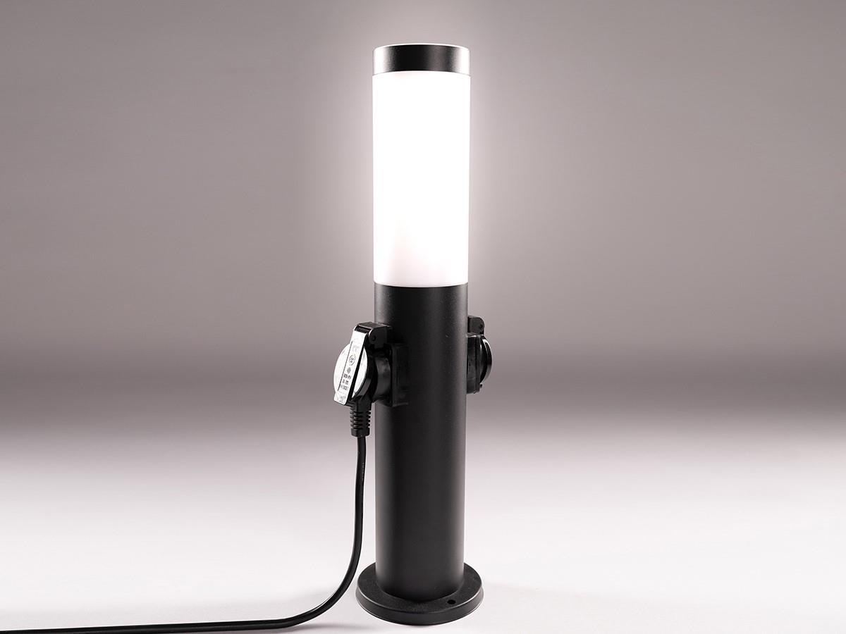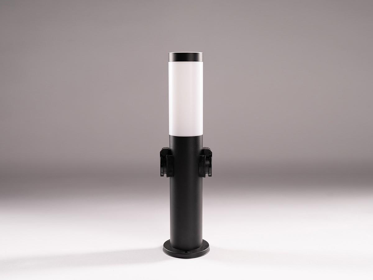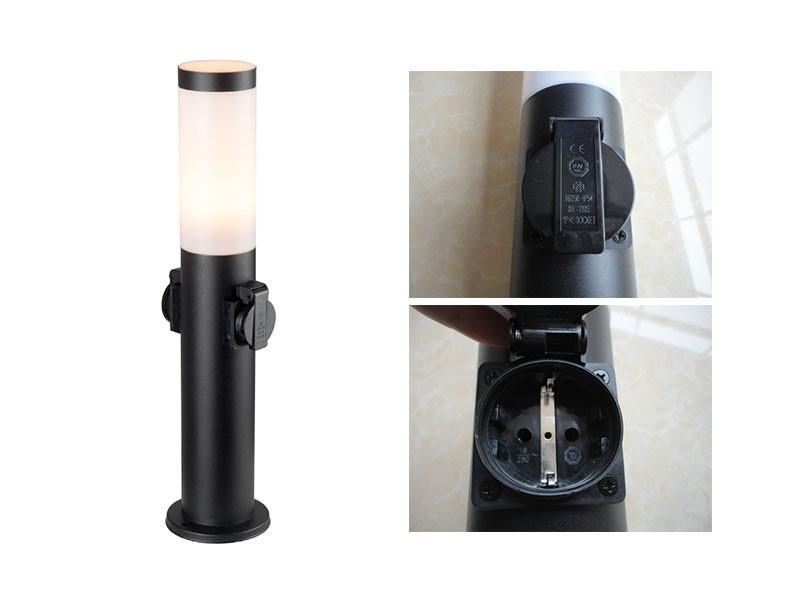 2 x Tuinlamp cilinder E27 fitting zand zwart waterdicht met 2 stopcontacten - IP54 waterdicht - afm. Ø 110 x 450mm- materiaal roestvfrij staal en PC diffuser - bevestiging inclusief - 2 x stopcontacten met deksel - bulb niet inbegrepen - geschikt voor buiten - een bulb invoer - voltage 220-240V - max 15 watt - Staande buitenlamp - geschikt voor diameter Ø45mm bulb G45 P45 T45 - SKU 00711