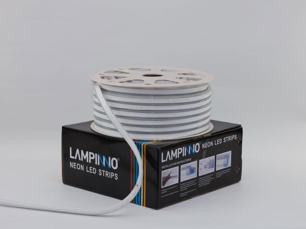 1 x 20 meter 8W/m SMD Neon LED Strip waterdicht RGB Bluetooth - dimming en kleur vervangen met afstandsbediening en door mobiel bluetooth app - 120 LED/meter - lichtkleur RGB - IP65 waterdicht - afm 20m - per 1 meter of meer meter in te korten - levensduur 30.000 uur - voltage 220-240 V - SMD 5050 - 1 Neon LED Strip stekker met bluetooth en afstandsbediening controller inbegrepen - sku 394