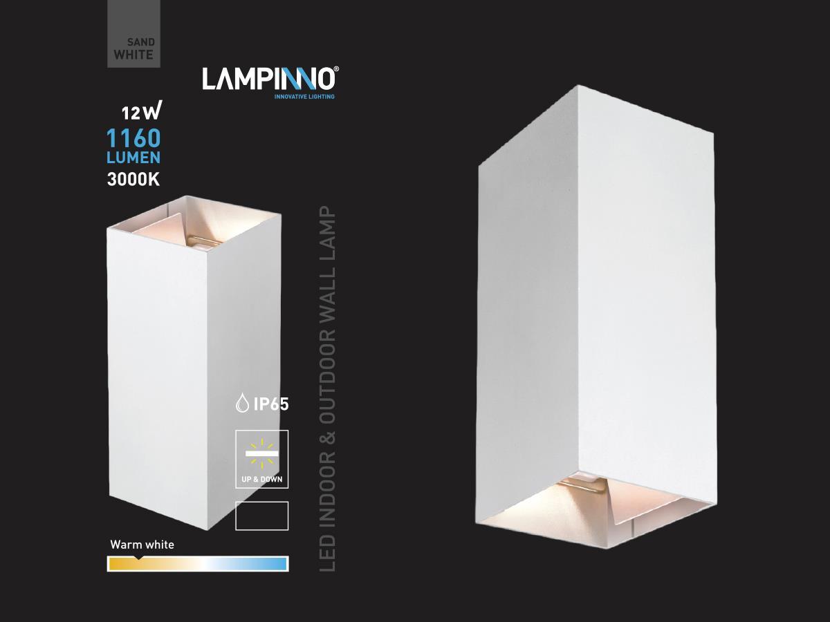 20 x 12 watt 2x6W LED zand wit wandlamp rechthoekig duo licht verstelbaar - afdichting IP65 waterdicht - verstelbare hoek van de lichtbundels - lichtkleur 3000K warm wit - lichtstroom 1160 lumen - COB LED - materiaal aluminium - boven en onder verlichting - afm. 170mm x 78mm x 70mm - voltage 220-240V - bevestiging inclusief - geschikt voor binnen en buiten - SKU 00980