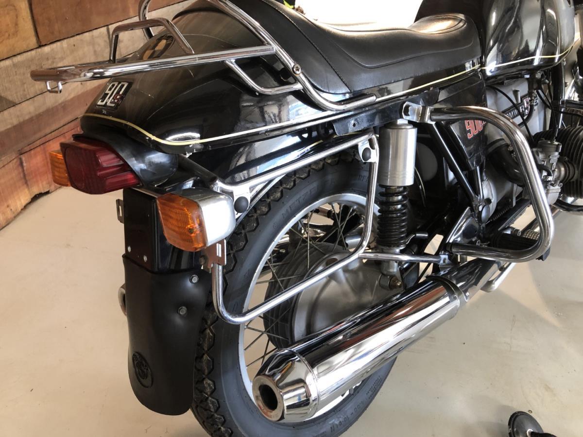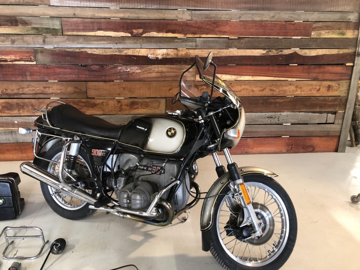De BMW R 90 S stond in de jaren '70 bekend als een van de snelste en betrouwbaarste motoren die er te verkrijgen waren. In de loop der jaren zijn er zeer veel originele exemplaren omgebouwd naar café racers en is het moeilijk om nog een origineel exemplaar uit 1975 te vinden. Deze BMW heeft alle opties die in het jaar 1975 te krijgen waren voor dit type motor. De koffers en chroom bull bars zijn voor handen. Ook de sport plexi voor op de cardinage zodat je kon afwisselen naar een sportievere look. Er zijn ook nog reserve koffers en spiegels aanwezig. Motor voor echte liefhebbers.