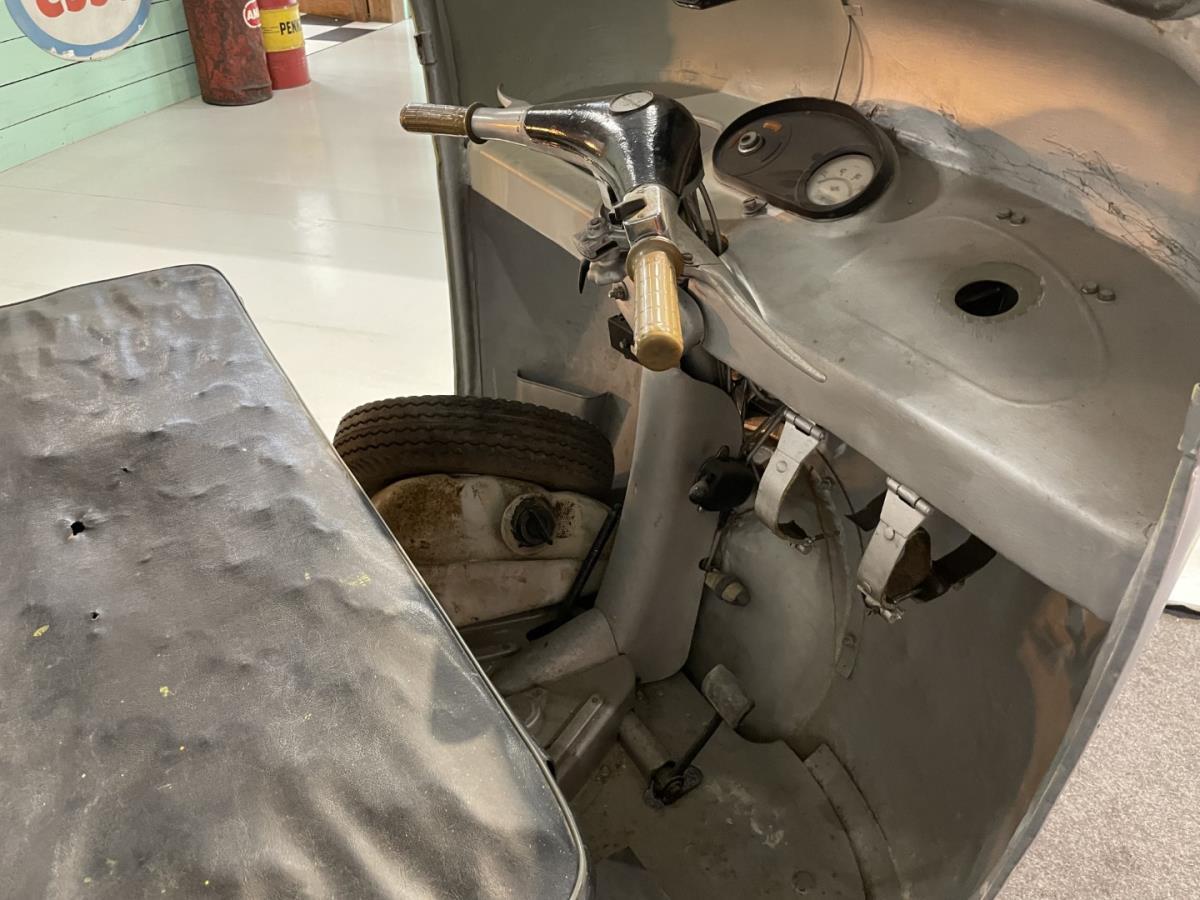 Cette Lambretta a déjà été restaurée au niveau du châssis et nécessite des finitions au niveau de la carrosserie et de la mécanique.