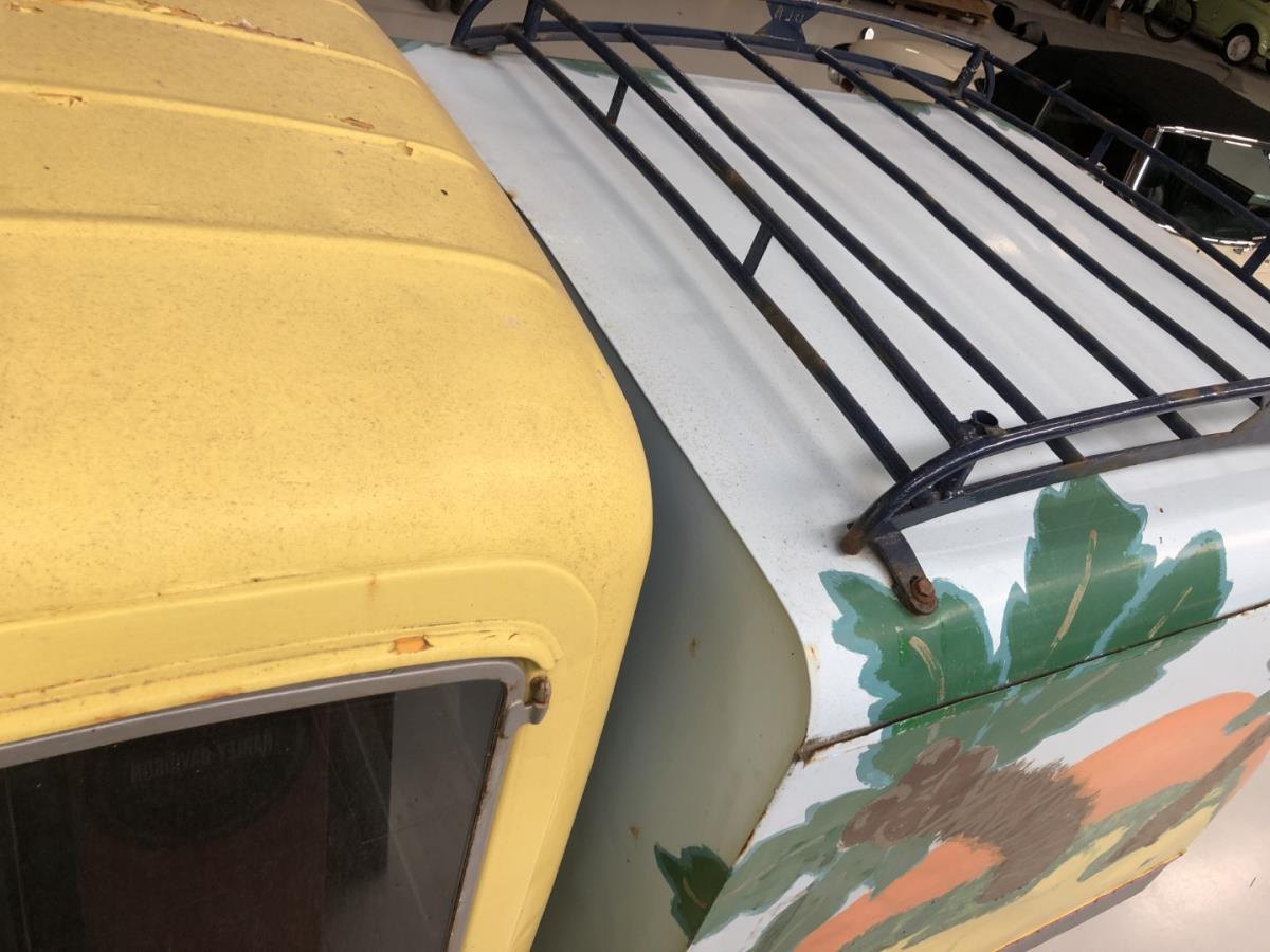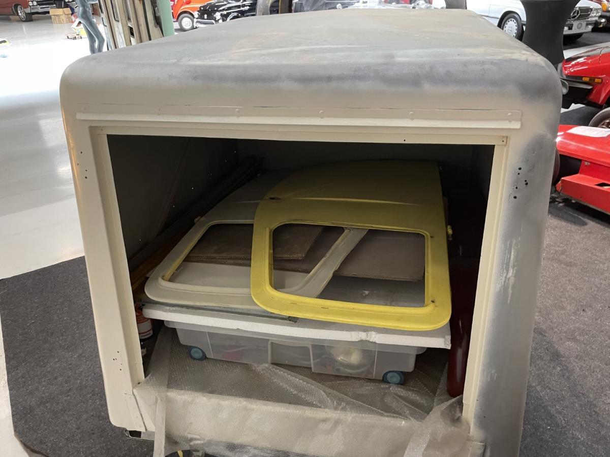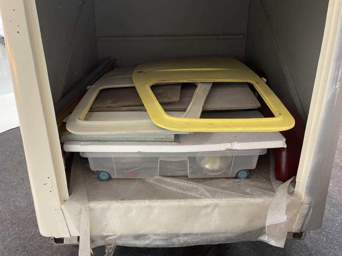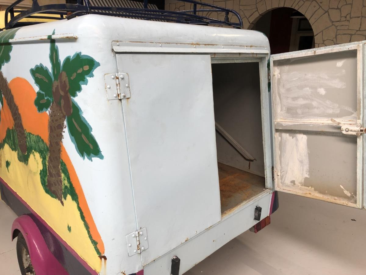 De opbouw achteraan is volledig metaal en deze Lambretta heeft volle metalen deuren zowel vooraan als achteraan.