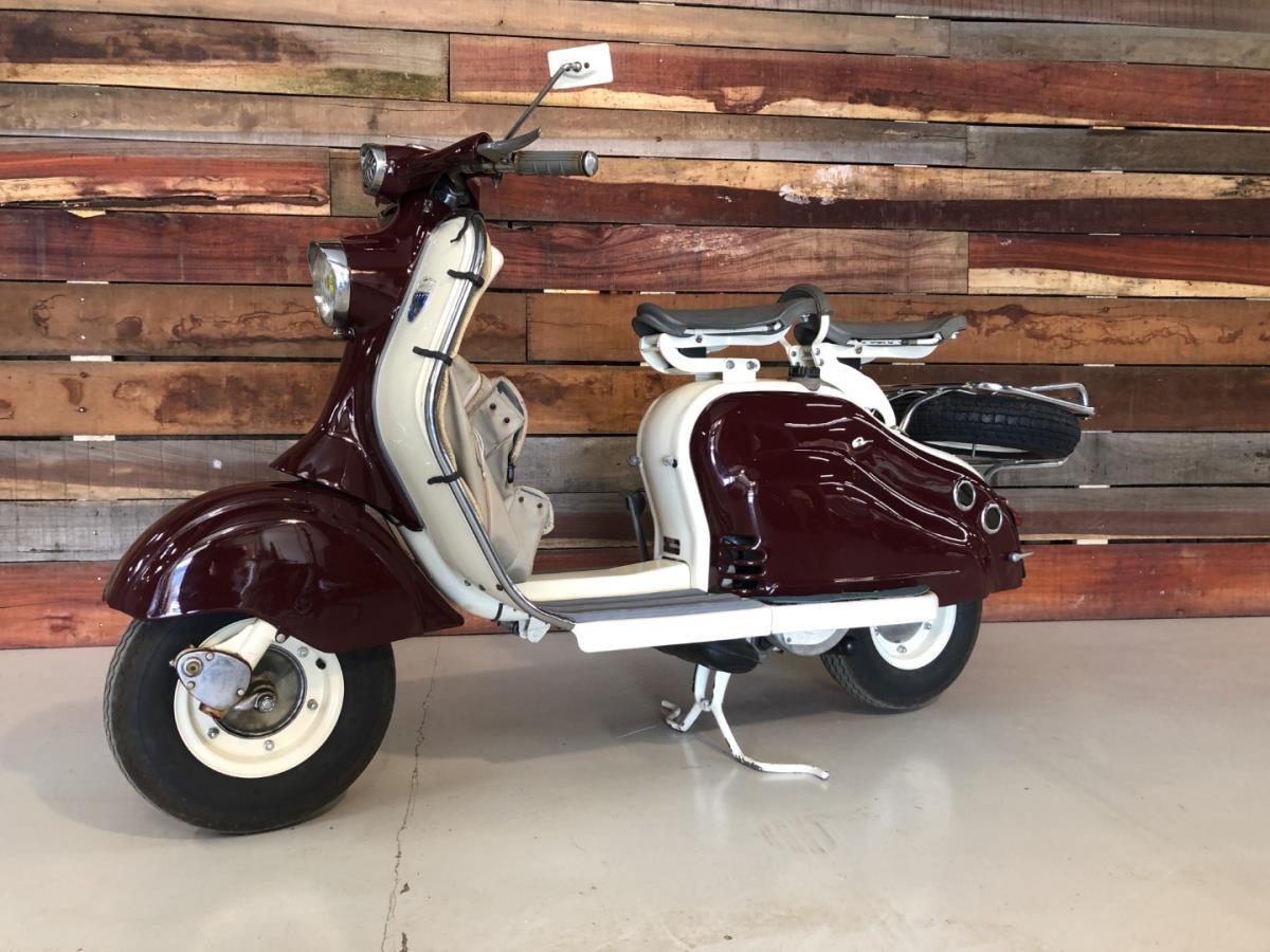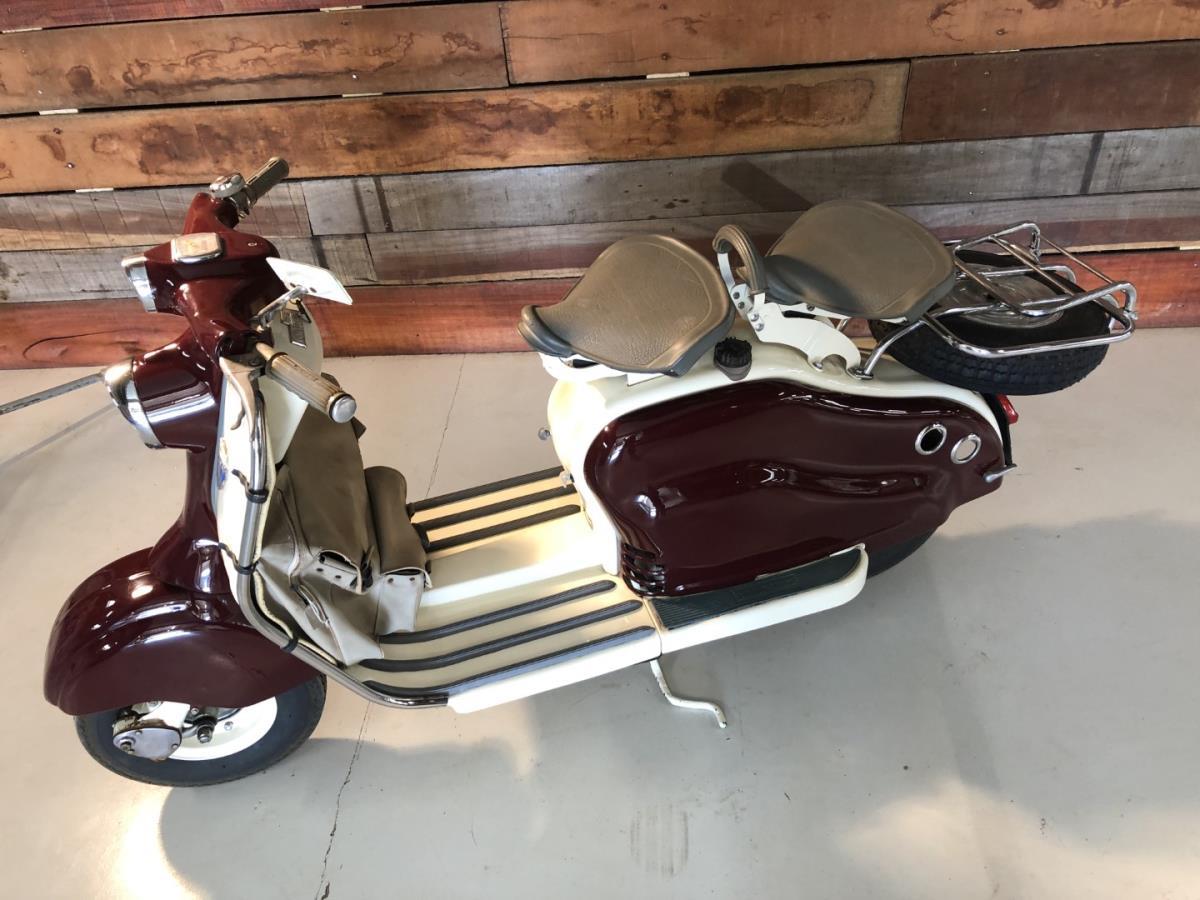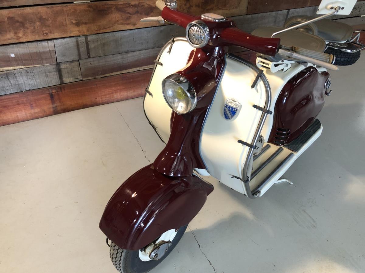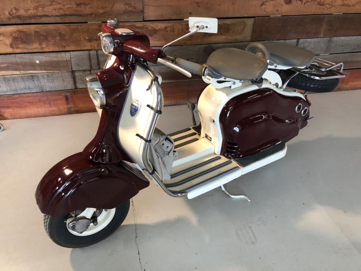 Lambretta LD scooter dat werd gebouwd in Frankrijk. Zeer mooie staat en dit model is voorzien van enkele zeldzame optie's. Stuurbescherming met ingebouwde claxon. Reiszak origineel gemaakt voor dit model. Chroom afwerking en bagagedrager. Dit model is zeer gezocht. Lambretta LD scooter that was built in France. Very nice condition and this model comes with some rare options. Handlebar guard with built-in horn. Travel bag originally made for this model. Chrome finish and luggage rack. This model is highly sought after. Scooter Lambretta LD construit en France. Très bon état et ce modèle est livré avec quelques options rares. Protège guidon avec klaxon intégré. Sac de voyage d'origine pour ce modèle. Finition chromée et porte-bagages. Ce modèle est très recherché.