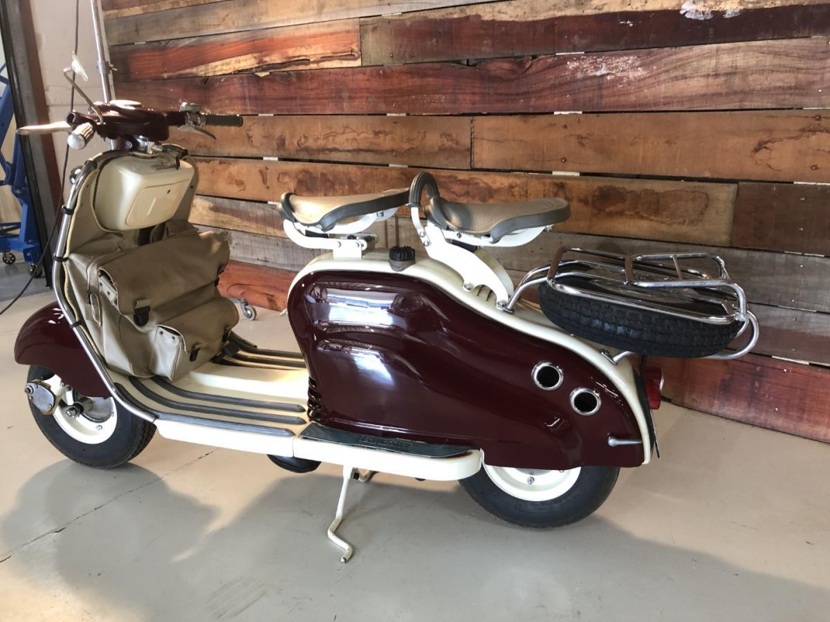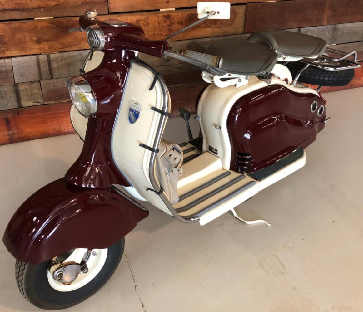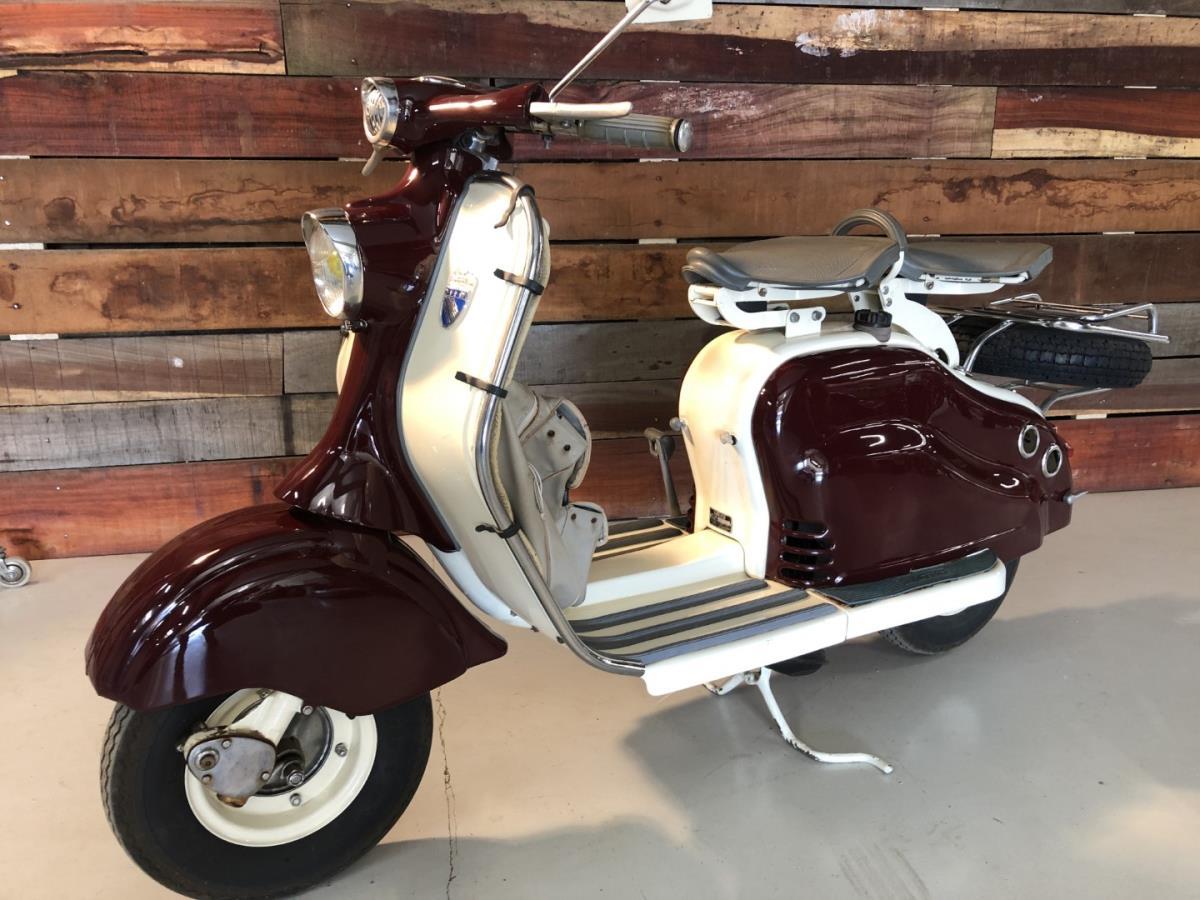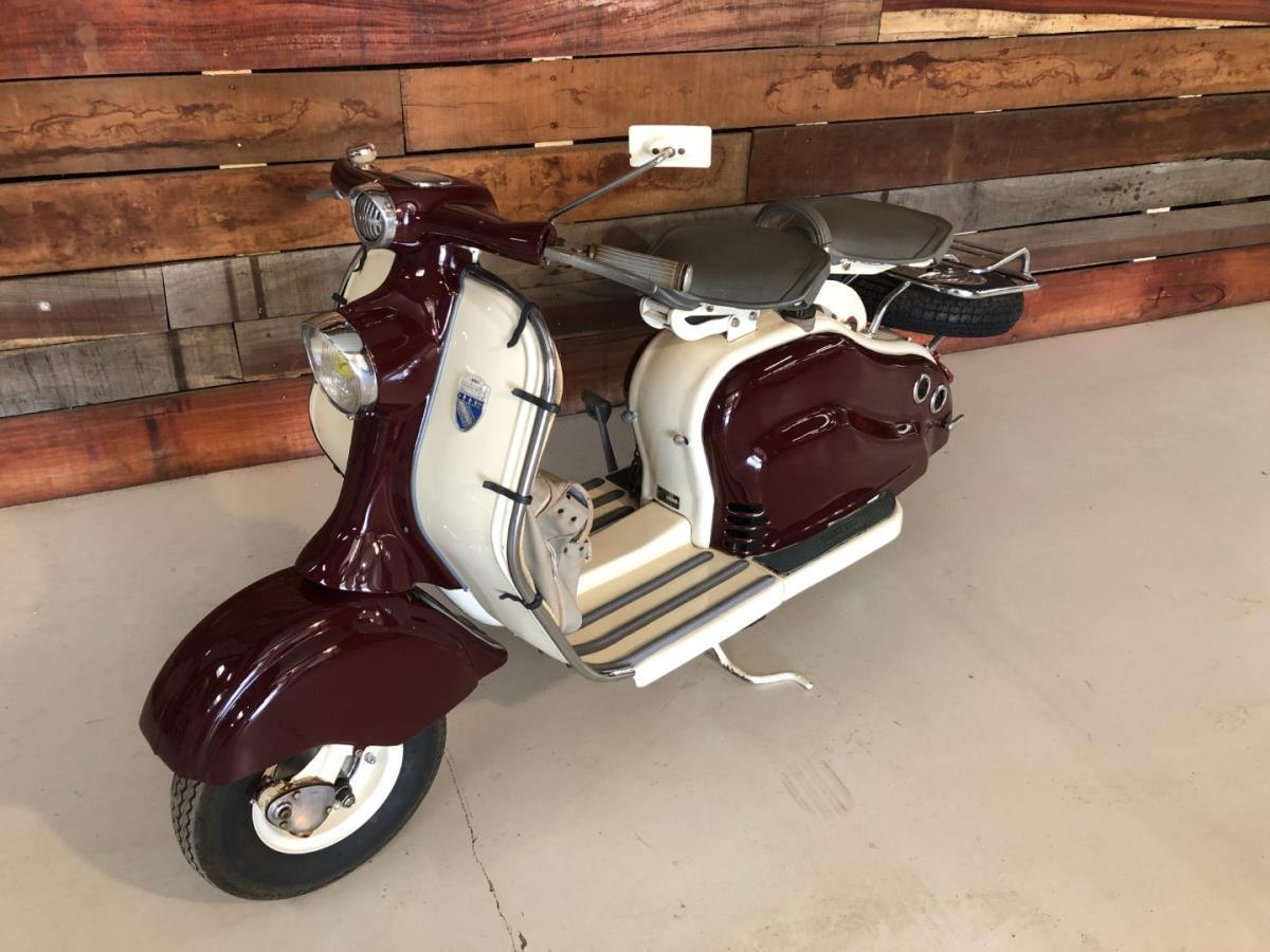 Lambretta LD scooter dat werd gebouwd in Frankrijk. Zeer mooie staat en dit model is voorzien van enkele zeldzame optie's. Stuurbescherming met ingebouwde claxon. Reiszak origineel gemaakt voor dit model. Chroom afwerking en bagagedrager. Dit model is zeer gezocht. Lambretta LD scooter that was built in France. Very nice condition and this model comes with some rare options. Handlebar guard with built-in horn. Travel bag originally made for this model. Chrome finish and luggage rack. This model is highly sought after. Scooter Lambretta LD construit en France. Très bon état et ce modèle est livré avec quelques options rares. Protège guidon avec klaxon intégré. Sac de voyage d'origine pour ce modèle. Finition chromée et porte-bagages. Ce modèle est très recherché.