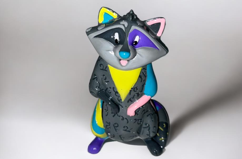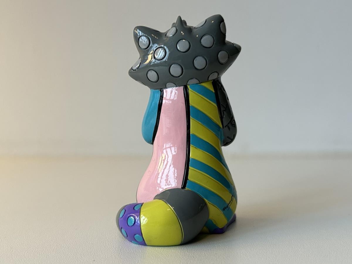 Origineel keramiek Disney-beeld en verzamelobject van Meecko uit Pochahontas, vervaardigd uit hoogwaardige polyresin steenhars door kunstenaar Romero Britto. Afmeting: H: 8cm X W: 3.99cm X D: 4.5cm. Staat/conditie: Perfecte nieuwstaat, zonder originele verpakking en verpakkingsdoos. Uitgever: Enesco/Romero Britto. Reeks/collectie: Disney by Britto uit Popshop Gallery (shopbritto.com) - Showcase collection. Authenticiteitszegel onderaan het beeld (zie foto's) en handtekening in beeld gegraveerd (zie foto). Galerijprijs: 100 dollar (zie shopbritto.com). Beelden nemen in waarde toe, vermits ze gelimiteerd worden geproduceerd en momenteel niet meer worden vervaardigd. Braziliaans kunstenaar Romero Britto staat bekend om zijn vrolijke en bonte gebruik van kleuren en patronen. Hij combineert klassieke Disney-figuren met pop-art-designs, De beeldjes zijn stuk voor stuk herkenbare Disney-karakters, maar gezien door de ogen van Britto. Een lust voor het oog en een kleurrijke eyecatcher in je interieur. De beelden worden handbeschilderd, dus minimale afwijkingen in kleur en/of afwerking kunnen voorkomen.