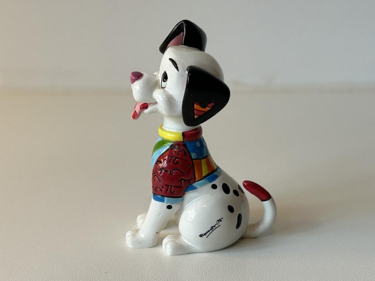 Origineel keramiek Disney-beeld en verzamelobject van de hond uit de 101 Dalmatiërs, vervaardigd uit hoogwaardige polyresin steenhars door kunstenaar Romero Britto. Afmeting: +/- 9 à 10 cm. Staat/conditie: Perfecte nieuwstaat, zonder originele verpakking en verpakkingsdoos. Uitgever: Enesco/Romero Britto. Reeks/collectie: Disney by Britto uit Popshop Gallery (shopbritto.com) - Showcase collection. Authenticiteitszegel onderaan het beeld (zie foto's) en handtekening in beeld gegraveerd (zie foto). Galerijprijs: 100 dollar (zie shopbritto.com). Beelden nemen in waarde toe, vermits ze gelimiteerd worden geproduceerd en momenteel niet meer worden vervaardigd. Braziliaans kunstenaar Romero Britto staat bekend om zijn vrolijke en bonte gebruik van kleuren en patronen. Hij combineert klassieke Disney-figuren met pop-art-designs, De beeldjes zijn stuk voor stuk herkenbare Disney-karakters, maar gezien door de ogen van Britto. Een lust voor het oog en een kleurrijke eyecatcher in je interieur. De beelden worden handbeschilderd, dus minimale afwijkingen in kleur en/of afwerking kunnen voorkomen.