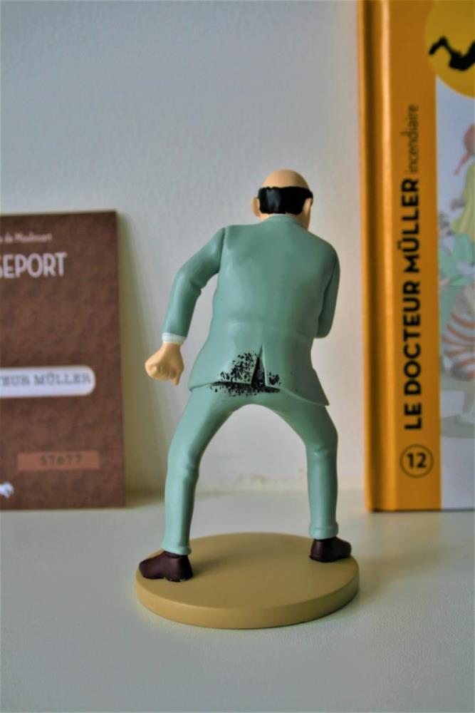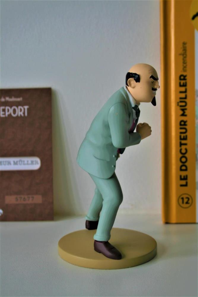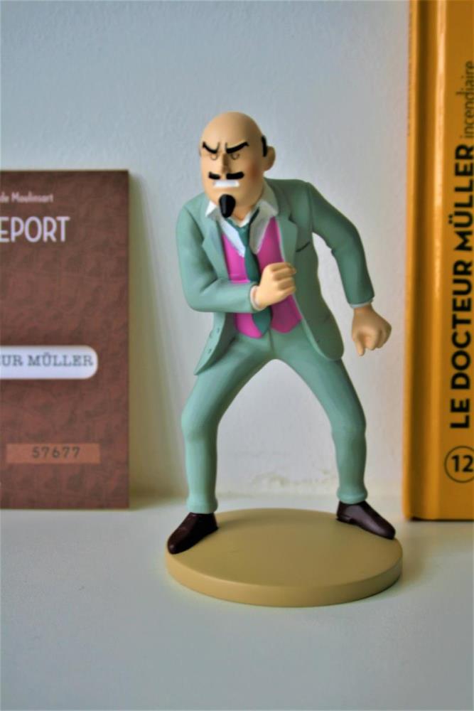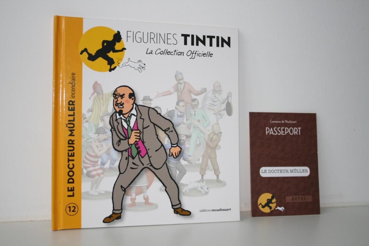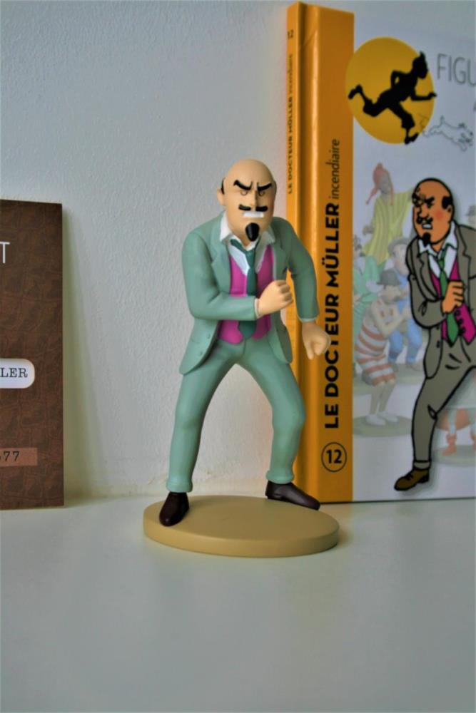 Kuifje Beeldje uit kwalitatief geverfde kunsthars van "Dokter Müller" (nr. 12) uit het album "De Zwarte Rotsen". Verzamelfiguur uitgegeven door Moulinsart in 2012 in de serie "Figurines Tintin: La Collection Officielle". Ontworpen en getekend door Hergé. Figuur bevat een Franstalig echtheidscertificaat en een Franstalige monografie over personage in desbetreffende stripalbum. Verkoopsstaat: perfecte staat. De personages uit de editie hebben een hoogte ca. 10 tot 15 cm en breedte van ca. 5 tot 7 cm, afhankelijk van het individuele personage. De uitgave van het figuur uit kunsthars kent een beperkte oplage vanwege het unieke echtheidscertificaat (individueel referentienummer).