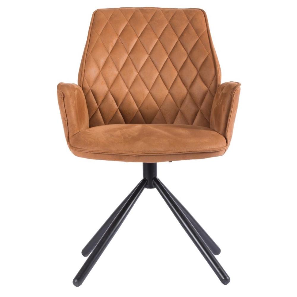 6x Design eetkamerstoel, model: LDN-Hcognac, kleur: cognac, microvezel stof, verzwaard onderstel, draaibaar