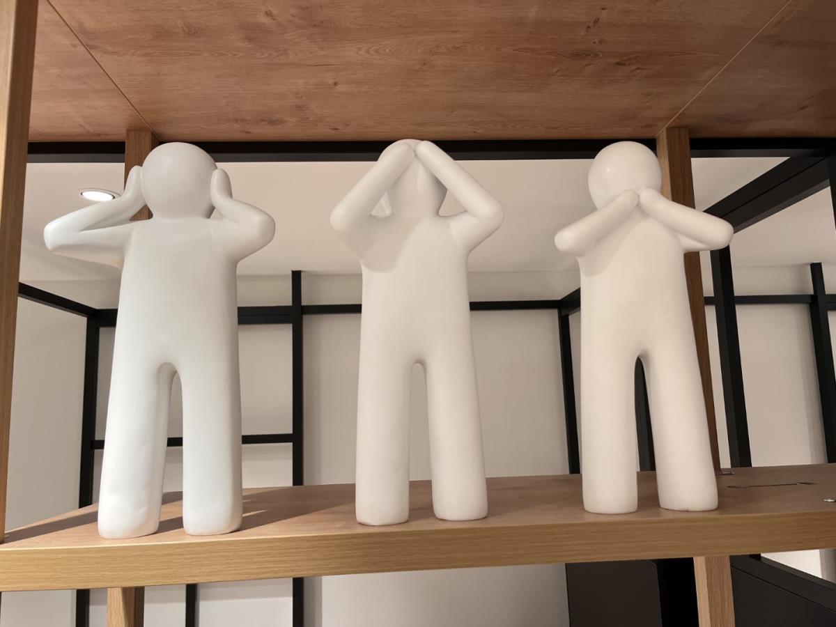 1 Set aardewerken beelden "Horen-zien-zwijgen)
