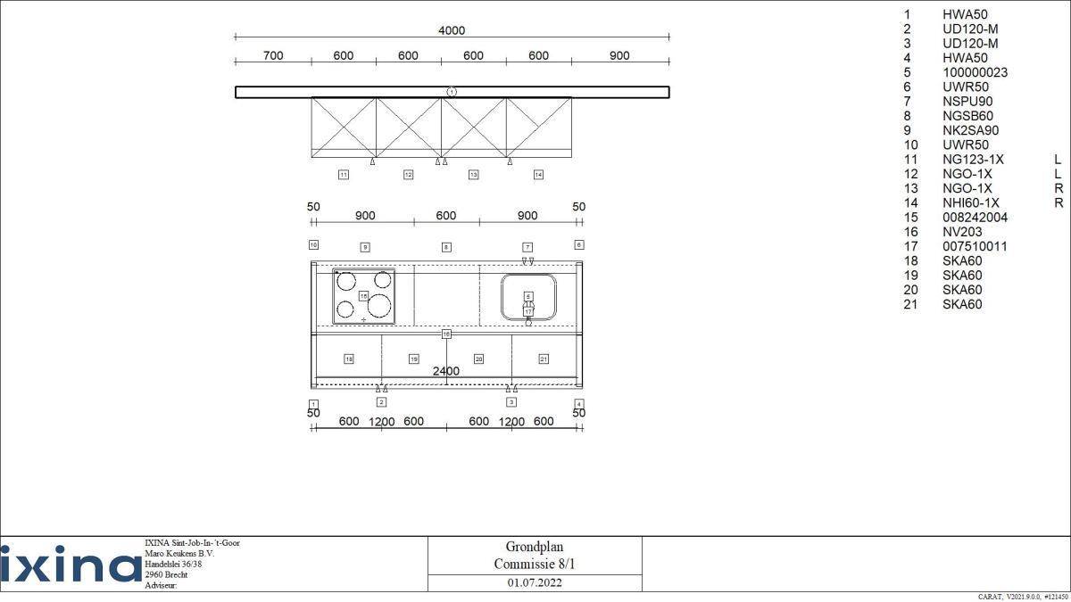 | Betreft keuken INCLUSIEF toestellen Afmetingen plm: controleer technische plannen (zie foto's) Hoge kast eiland: 2500x500x1200mm Kookeiland : 2500x665x920mm Wandmeubel : 2400x600x2230mm Opgelet: De koper dient deze zelf op een professionele manier te demonteren zonder schade te berokkenen aan het gebouw Grondplannen zijn beschikbaar: Zie foto's |