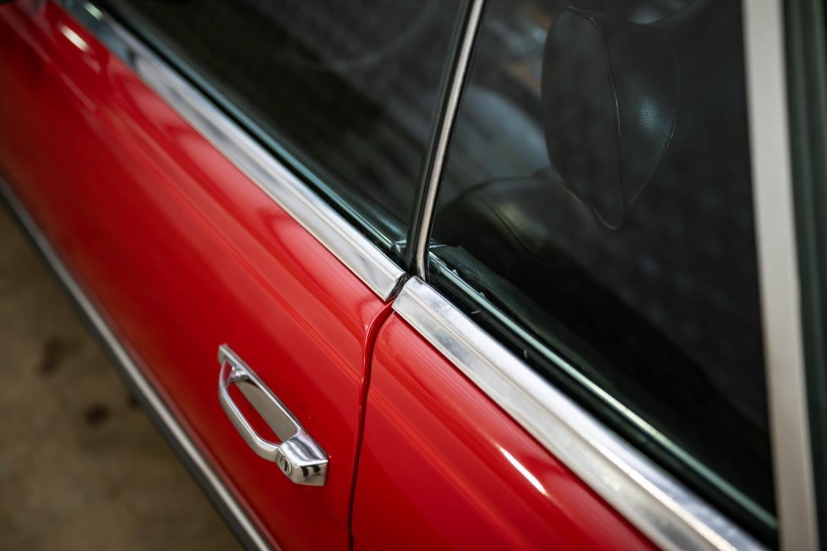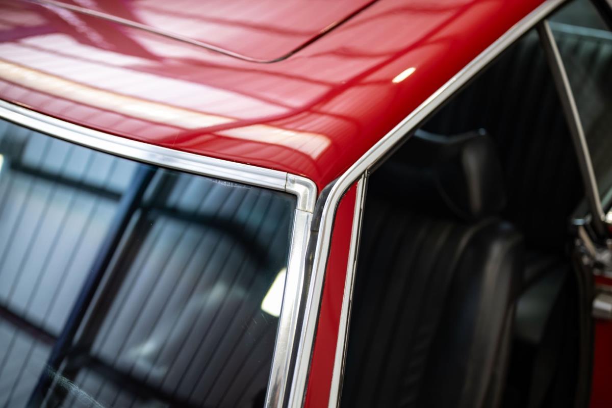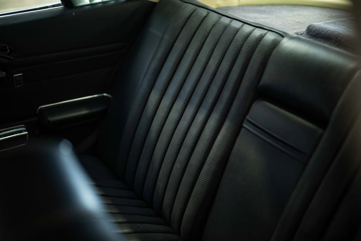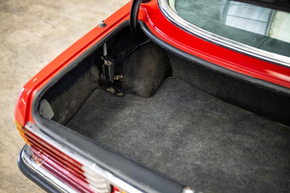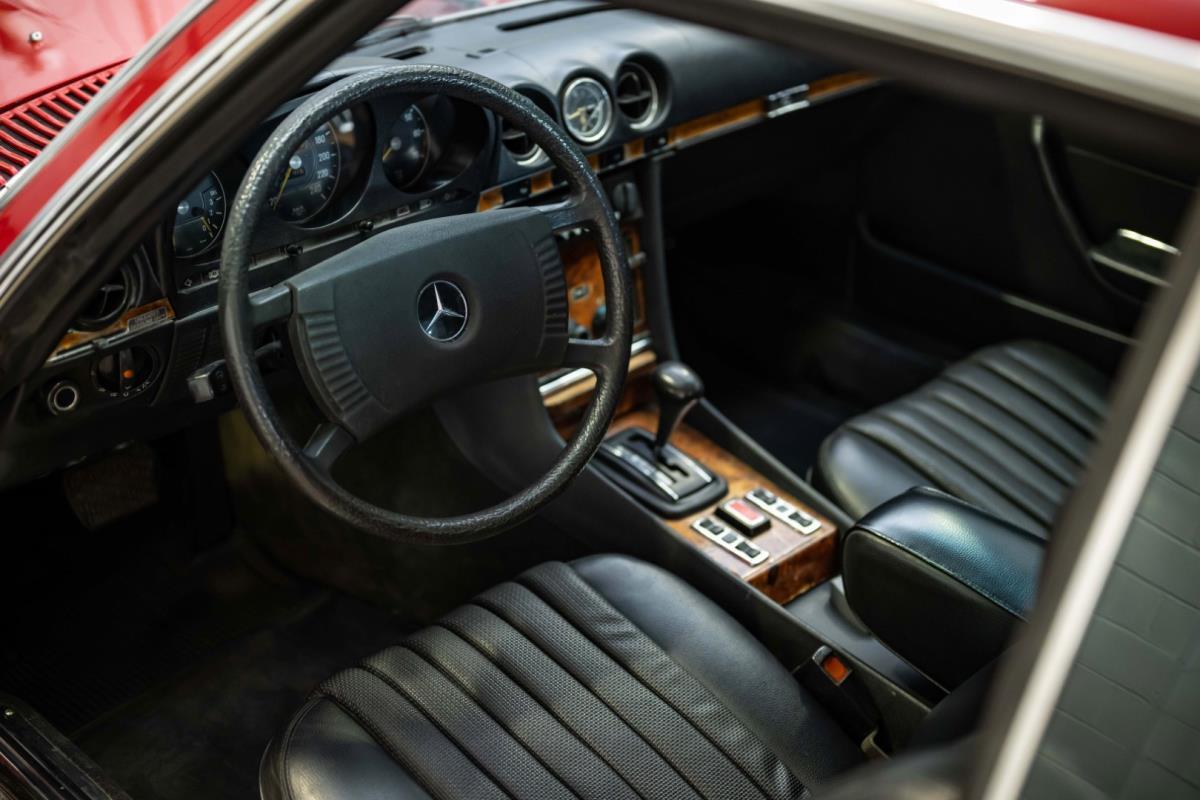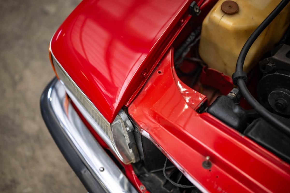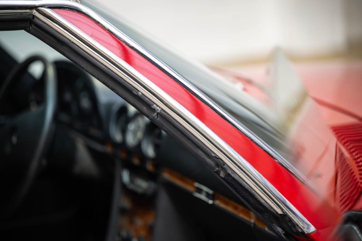 De opnieuw gespoten carrosserie ziet er geweldig uit, nietwaar? Helder en levendig, het werd duidelijk aangebracht door iemand die wist wat hij deed, maar het canvas waarop het werd aangebracht is even indrukwekkend. Met strakke en consistente shutlines komt de legendarische M-B-bouwkwaliteit tot uiting, zelfs na al die jaren. Zoals je zou verwachten na een hoogwaardige overspuitbeurt die sindsdien weinig nut heeft gehad, zijn er geen deuken, deuken of andere beschadigingen die de afwerking kunnen verpesten. De 450SLC was niet afgewerkt met veel chroom, maar wat er wel is, is recht en vrij van roest en putjes. Het schuifdak past goed in de opening en sluit goed af, en er zijn twee goede mistlampen en een set nieuwe kentekenplaten. De originele 14-inch lichtmetalen velgen zijn ook in prima staat. Glanzend en smetteloos, ze zijn uitgerust met een bijpassende set Bridgestone Turanza GR-80 banden. We zullen het nooit beu worden om u te vertellen dat de ervaring leert dat bijpassende banden van hoge kwaliteit een onfeilbaar teken zijn van een zorgzame en mechanisch sympathieke eigenaar die bereid is het juiste bedrag uit te geven aan het juiste onderhoud van zijn auto. Hun aanwezigheid sluit uiteraard de noodzaak van een grondige inspectie niet uit – iets wat de verkoper trouwens op prijs zou stellen – maar het geeft je misschien wel een korte weg naar hun houding ten opzichte van onderhoud. Wat het werk betreft: de rubberen bekleding op de bumpers is geschaafd en wankel, er zit een blaasje in de verf op het schuifdak, een deel van de afdichtingsrubbers is vergaan, er zit een klein chipje aan de bovenkant van het raamglas van het bestuurdersportier, sommige Het glas van de andere kant is bekrast, de lens van de buitenzijde van de achterlamp is geschaafd en er zitten wat oneffenheden in de lakafwerking op de voorspatbord aan de zijkant, de motorkap en onder de achterruit.