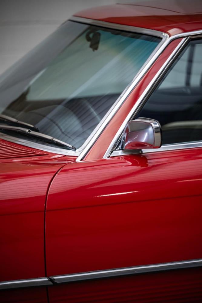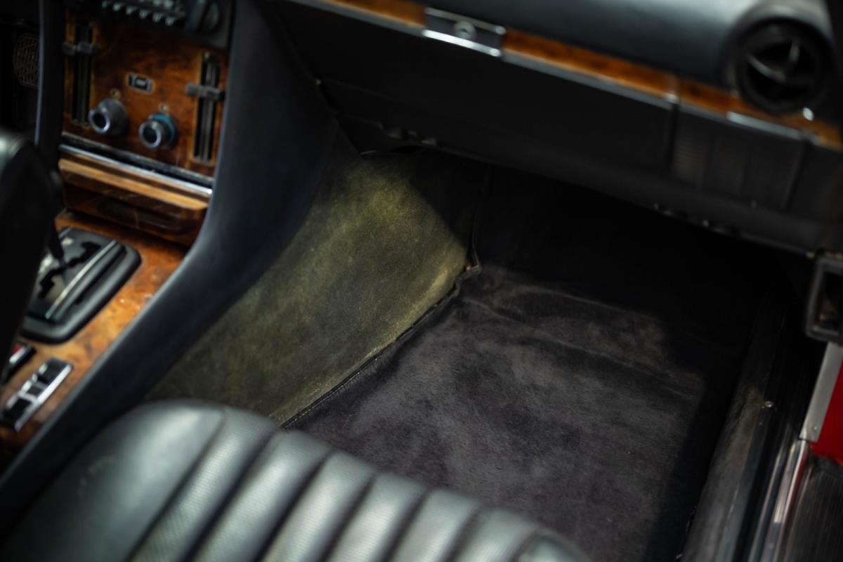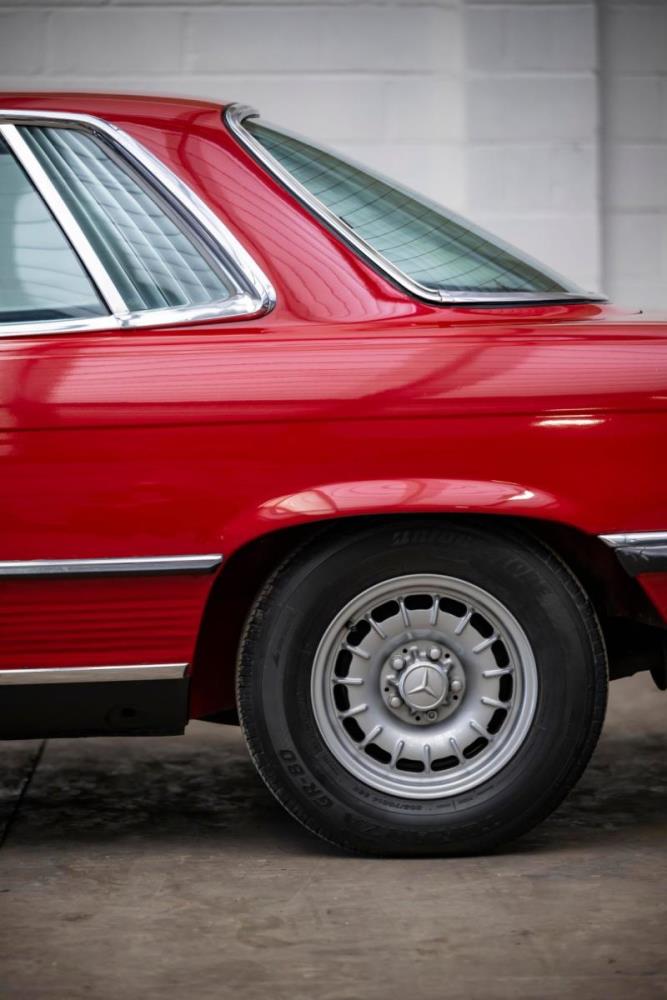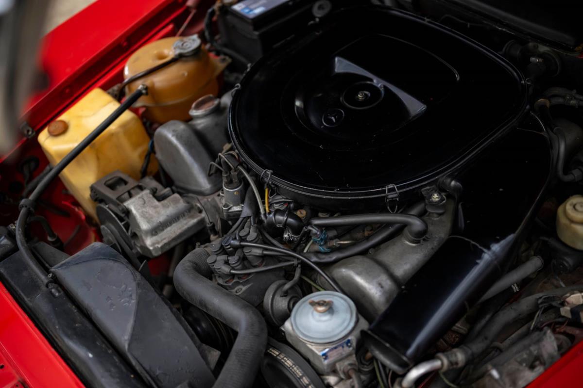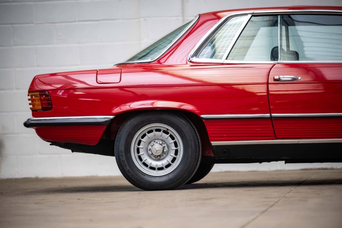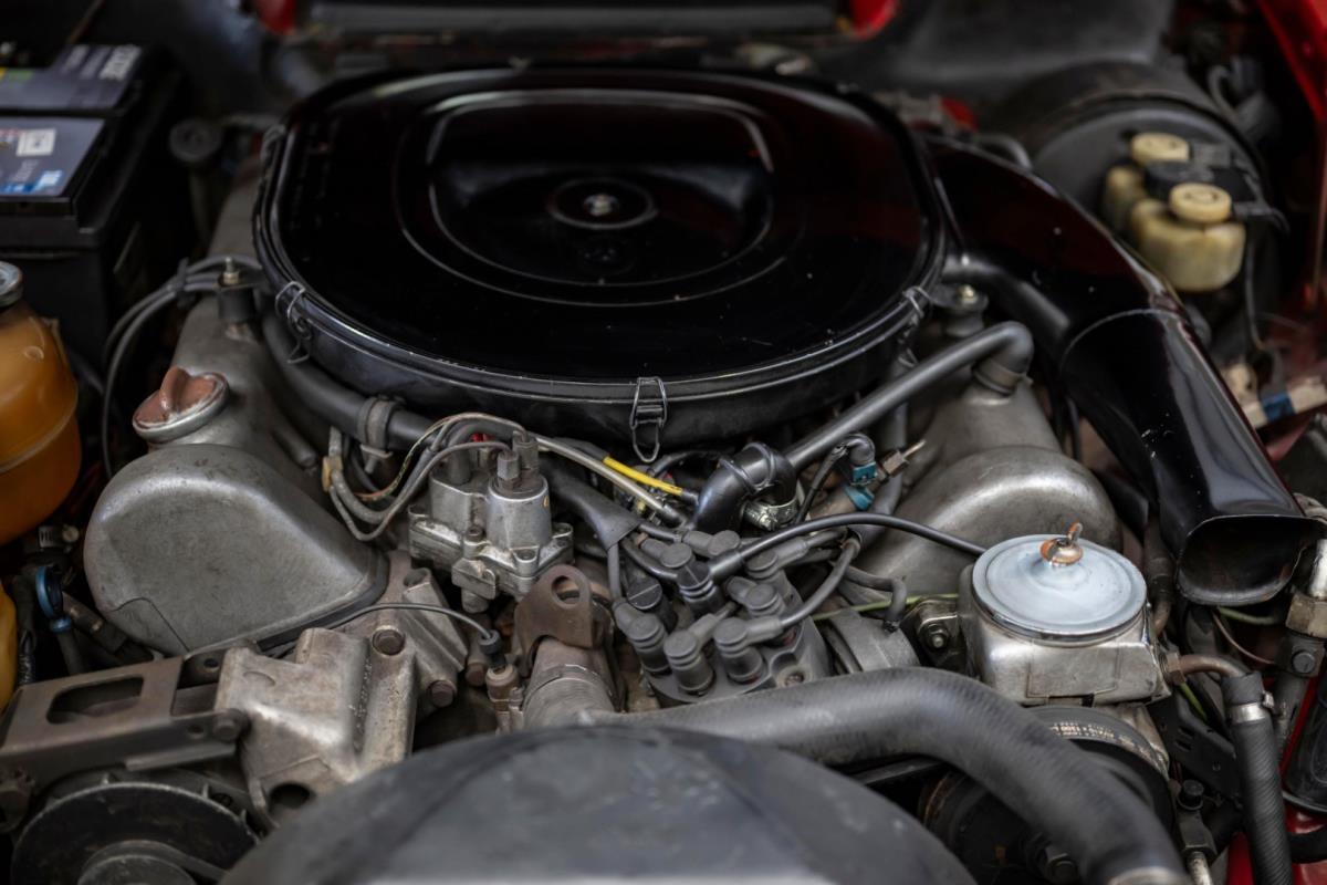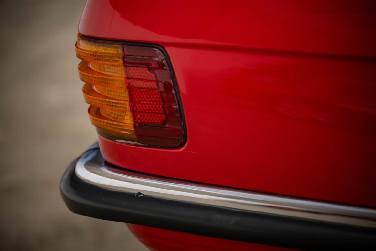 De opnieuw gespoten carrosserie ziet er geweldig uit, nietwaar? Helder en levendig, het werd duidelijk aangebracht door iemand die wist wat hij deed, maar het canvas waarop het werd aangebracht is even indrukwekkend. Met strakke en consistente shutlines komt de legendarische M-B-bouwkwaliteit tot uiting, zelfs na al die jaren. Zoals je zou verwachten na een hoogwaardige overspuitbeurt die sindsdien weinig nut heeft gehad, zijn er geen deuken, deuken of andere beschadigingen die de afwerking kunnen verpesten. De 450SLC was niet afgewerkt met veel chroom, maar wat er wel is, is recht en vrij van roest en putjes. Het schuifdak past goed in de opening en sluit goed af, en er zijn twee goede mistlampen en een set nieuwe kentekenplaten. De originele 14-inch lichtmetalen velgen zijn ook in prima staat. Glanzend en smetteloos, ze zijn uitgerust met een bijpassende set Bridgestone Turanza GR-80 banden. We zullen het nooit beu worden om u te vertellen dat de ervaring leert dat bijpassende banden van hoge kwaliteit een onfeilbaar teken zijn van een zorgzame en mechanisch sympathieke eigenaar die bereid is het juiste bedrag uit te geven aan het juiste onderhoud van zijn auto. Hun aanwezigheid sluit uiteraard de noodzaak van een grondige inspectie niet uit – iets wat de verkoper trouwens op prijs zou stellen – maar het geeft je misschien wel een korte weg naar hun houding ten opzichte van onderhoud. Wat het werk betreft: de rubberen bekleding op de bumpers is geschaafd en wankel, er zit een blaasje in de verf op het schuifdak, een deel van de afdichtingsrubbers is vergaan, er zit een klein chipje aan de bovenkant van het raamglas van het bestuurdersportier, sommige Het glas van de andere kant is bekrast, de lens van de buitenzijde van de achterlamp is geschaafd en er zitten wat oneffenheden in de lakafwerking op de voorspatbord aan de zijkant, de motorkap en onder de achterruit.