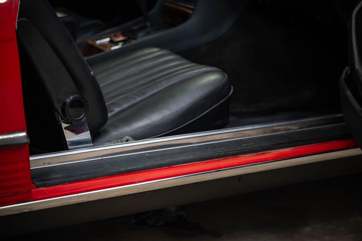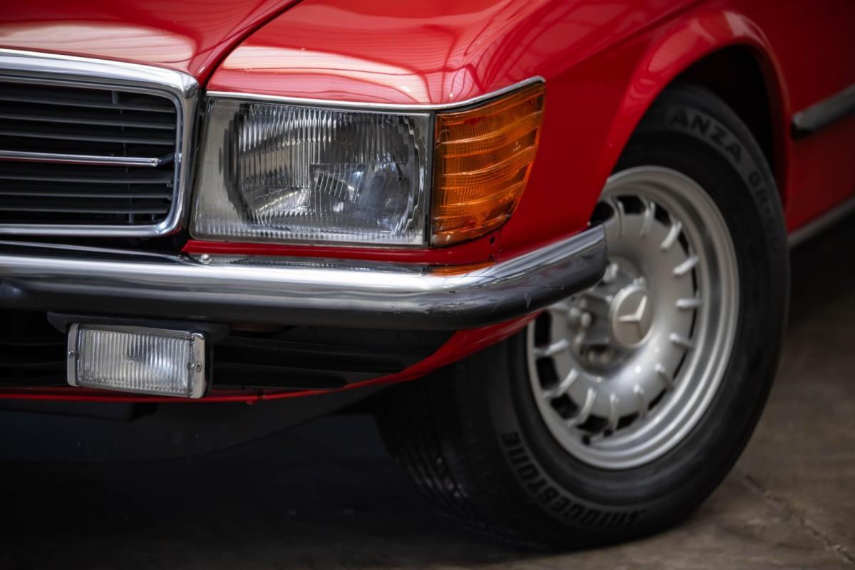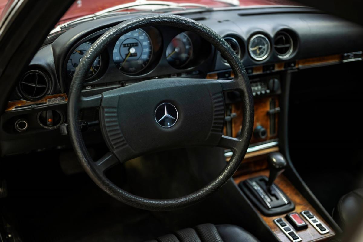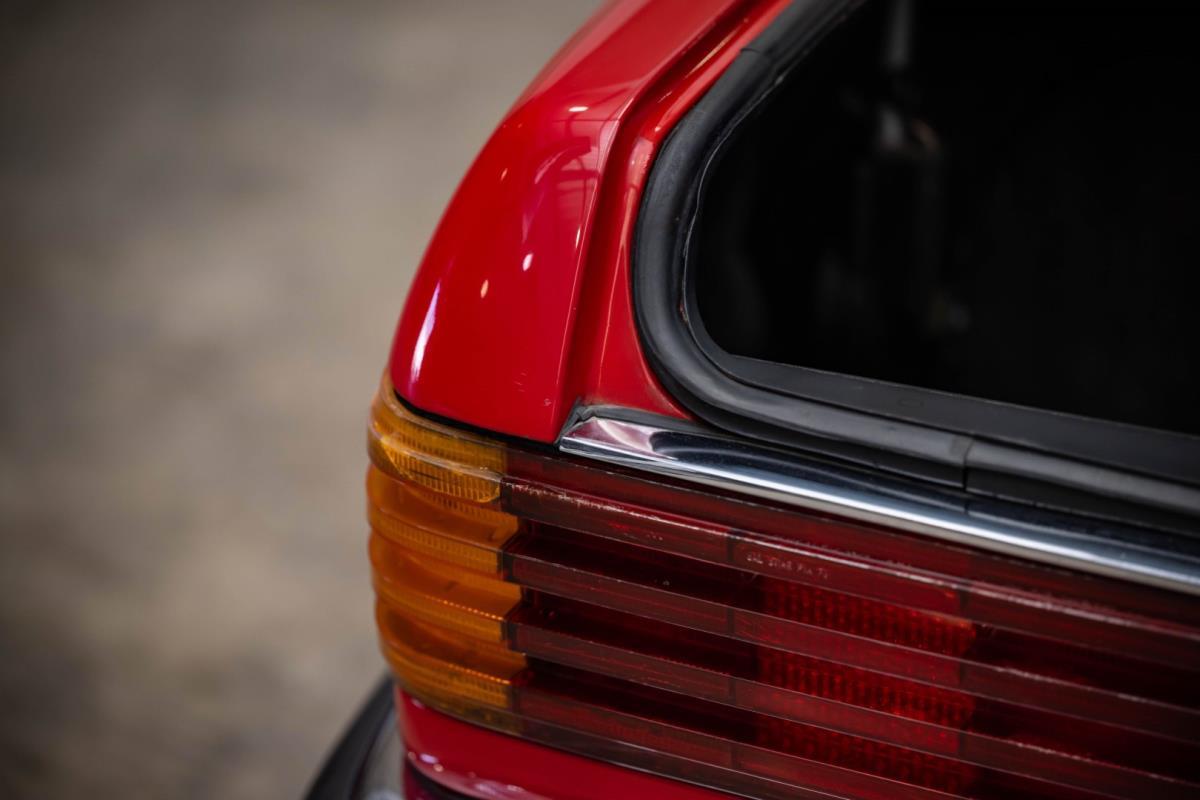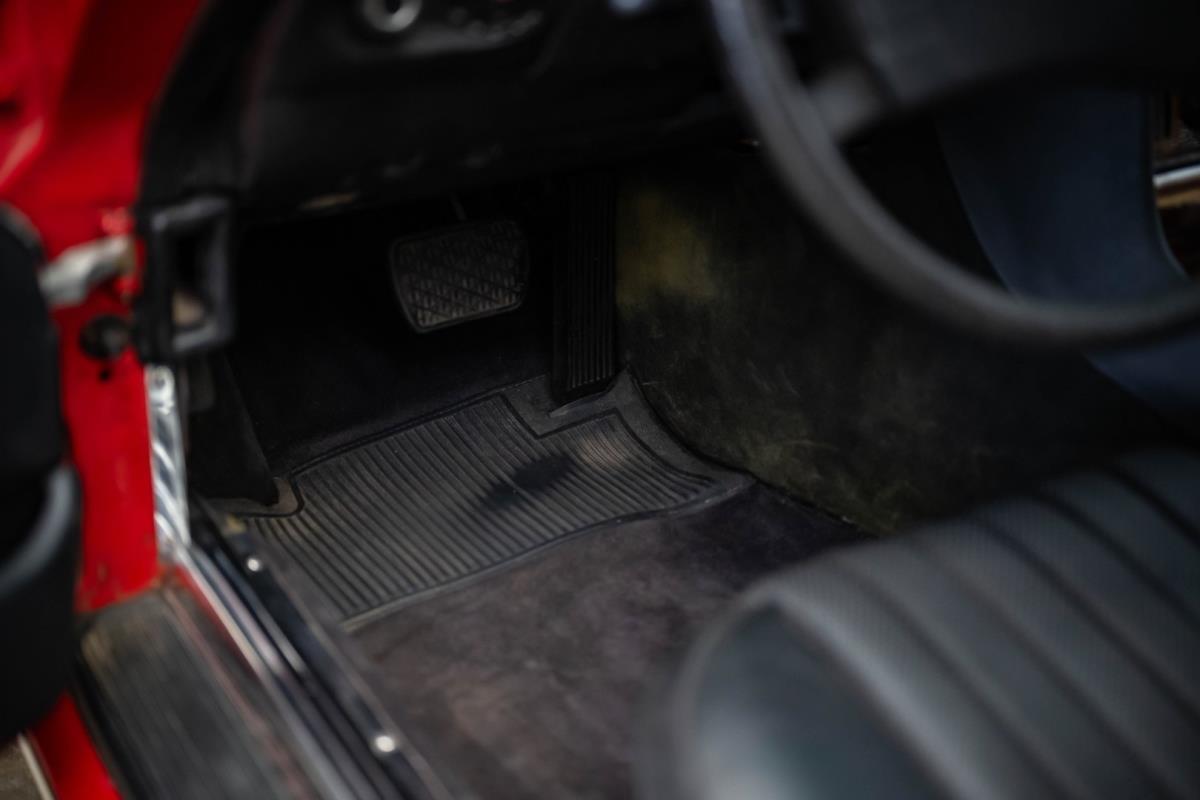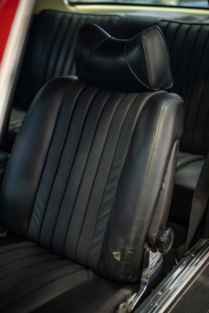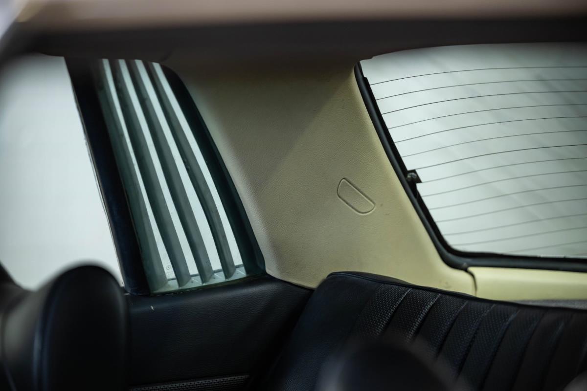 De opnieuw gespoten carrosserie ziet er geweldig uit, nietwaar? Helder en levendig, het werd duidelijk aangebracht door iemand die wist wat hij deed, maar het canvas waarop het werd aangebracht is even indrukwekkend. Met strakke en consistente shutlines komt de legendarische M-B-bouwkwaliteit tot uiting, zelfs na al die jaren. Zoals je zou verwachten na een hoogwaardige overspuitbeurt die sindsdien weinig nut heeft gehad, zijn er geen deuken, deuken of andere beschadigingen die de afwerking kunnen verpesten. De 450SLC was niet afgewerkt met veel chroom, maar wat er wel is, is recht en vrij van roest en putjes. Het schuifdak past goed in de opening en sluit goed af, en er zijn twee goede mistlampen en een set nieuwe kentekenplaten. De originele 14-inch lichtmetalen velgen zijn ook in prima staat. Glanzend en smetteloos, ze zijn uitgerust met een bijpassende set Bridgestone Turanza GR-80 banden. We zullen het nooit beu worden om u te vertellen dat de ervaring leert dat bijpassende banden van hoge kwaliteit een onfeilbaar teken zijn van een zorgzame en mechanisch sympathieke eigenaar die bereid is het juiste bedrag uit te geven aan het juiste onderhoud van zijn auto. Hun aanwezigheid sluit uiteraard de noodzaak van een grondige inspectie niet uit – iets wat de verkoper trouwens op prijs zou stellen – maar het geeft je misschien wel een korte weg naar hun houding ten opzichte van onderhoud. Wat het werk betreft: de rubberen bekleding op de bumpers is geschaafd en wankel, er zit een blaasje in de verf op het schuifdak, een deel van de afdichtingsrubbers is vergaan, er zit een klein chipje aan de bovenkant van het raamglas van het bestuurdersportier, sommige Het glas van de andere kant is bekrast, de lens van de buitenzijde van de achterlamp is geschaafd en er zitten wat oneffenheden in de lakafwerking op de voorspatbord aan de zijkant, de motorkap en onder de achterruit.
