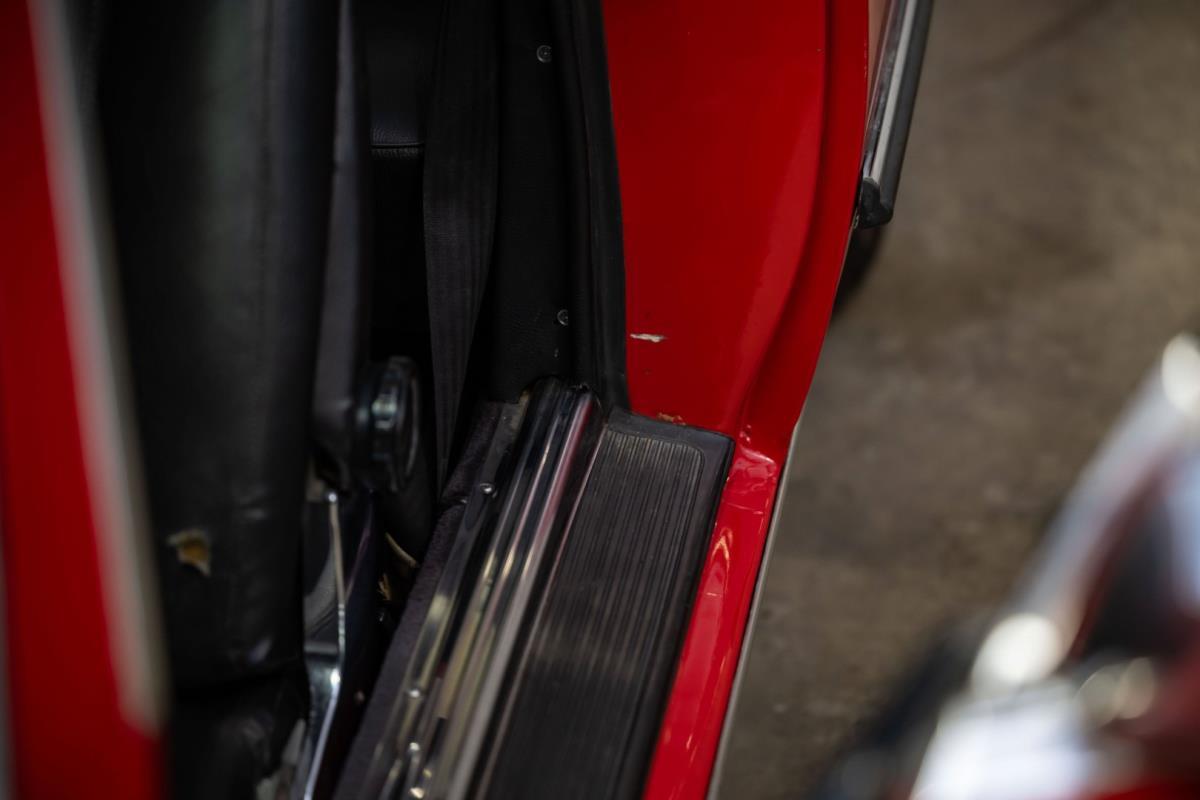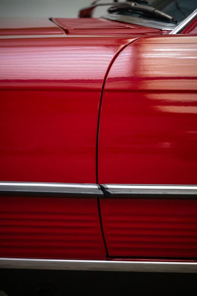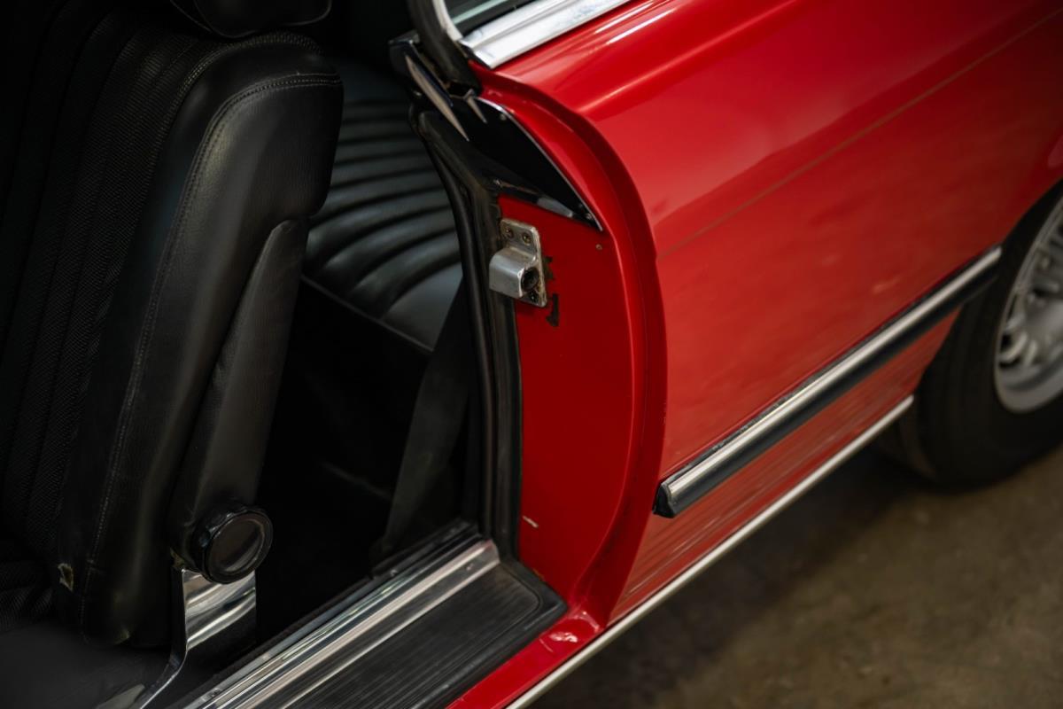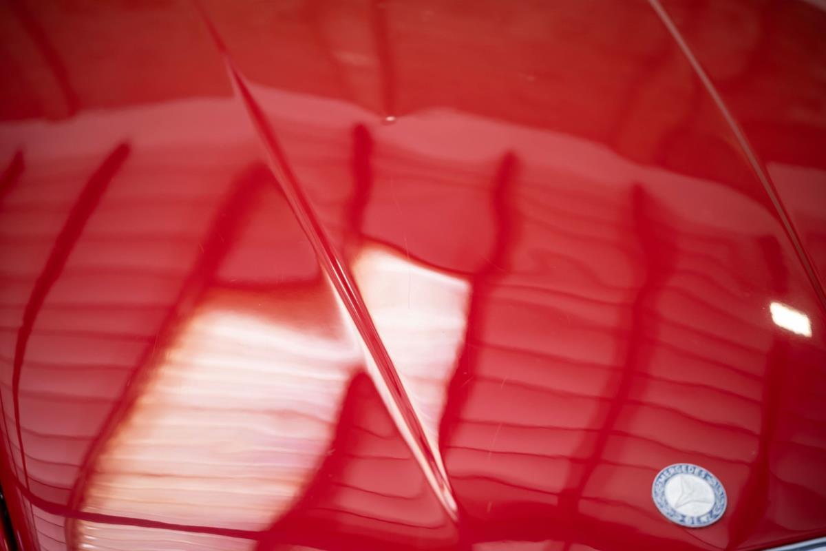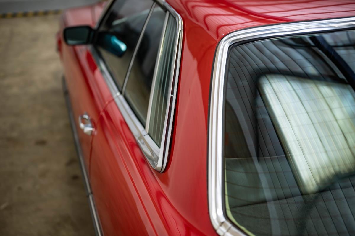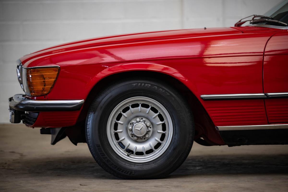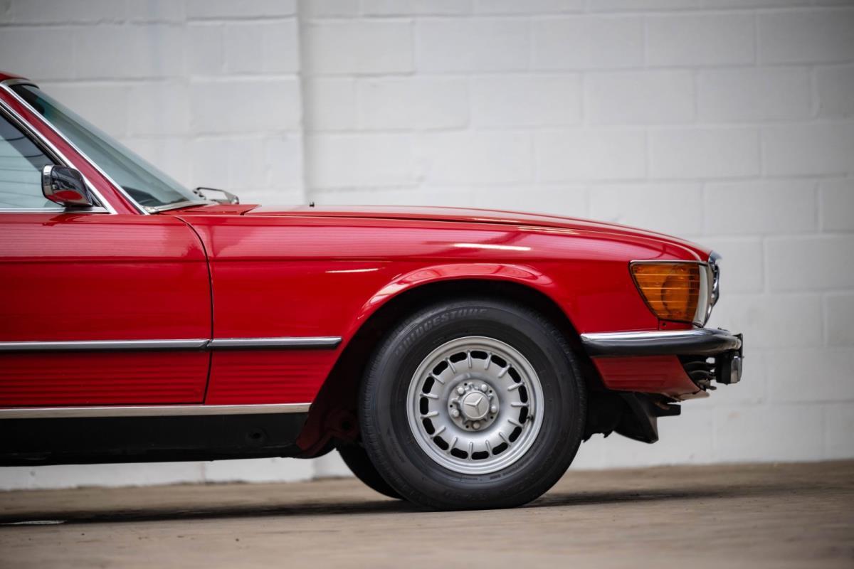 De opnieuw gespoten carrosserie ziet er geweldig uit, nietwaar? Helder en levendig, het werd duidelijk aangebracht door iemand die wist wat hij deed, maar het canvas waarop het werd aangebracht is even indrukwekkend. Met strakke en consistente shutlines komt de legendarische M-B-bouwkwaliteit tot uiting, zelfs na al die jaren. Zoals je zou verwachten na een hoogwaardige overspuitbeurt die sindsdien weinig nut heeft gehad, zijn er geen deuken, deuken of andere beschadigingen die de afwerking kunnen verpesten. De 450SLC was niet afgewerkt met veel chroom, maar wat er wel is, is recht en vrij van roest en putjes. Het schuifdak past goed in de opening en sluit goed af, en er zijn twee goede mistlampen en een set nieuwe kentekenplaten. De originele 14-inch lichtmetalen velgen zijn ook in prima staat. Glanzend en smetteloos, ze zijn uitgerust met een bijpassende set Bridgestone Turanza GR-80 banden. We zullen het nooit beu worden om u te vertellen dat de ervaring leert dat bijpassende banden van hoge kwaliteit een onfeilbaar teken zijn van een zorgzame en mechanisch sympathieke eigenaar die bereid is het juiste bedrag uit te geven aan het juiste onderhoud van zijn auto. Hun aanwezigheid sluit uiteraard de noodzaak van een grondige inspectie niet uit – iets wat de verkoper trouwens op prijs zou stellen – maar het geeft je misschien wel een korte weg naar hun houding ten opzichte van onderhoud. Wat het werk betreft: de rubberen bekleding op de bumpers is geschaafd en wankel, er zit een blaasje in de verf op het schuifdak, een deel van de afdichtingsrubbers is vergaan, er zit een klein chipje aan de bovenkant van het raamglas van het bestuurdersportier, sommige Het glas van de andere kant is bekrast, de lens van de buitenzijde van de achterlamp is geschaafd en er zitten wat oneffenheden in de lakafwerking op de voorspatbord aan de zijkant, de motorkap en onder de achterruit.