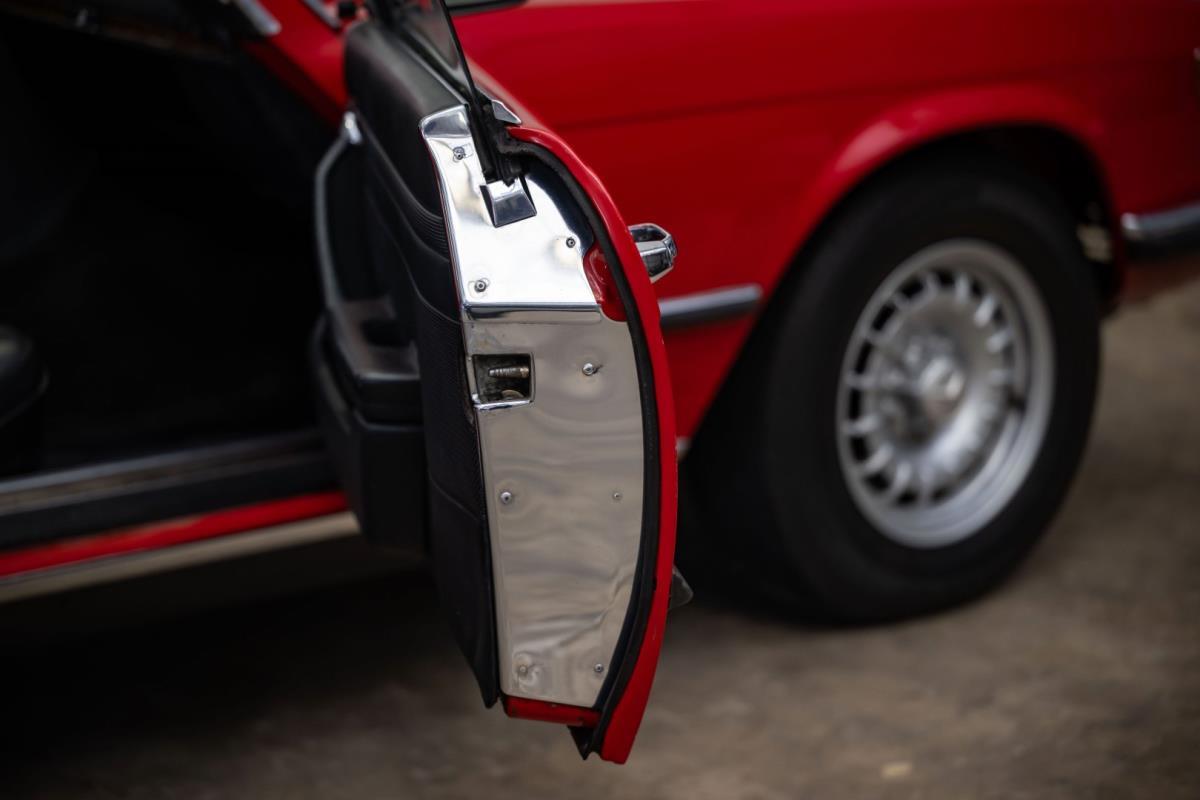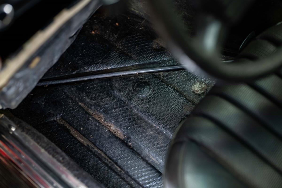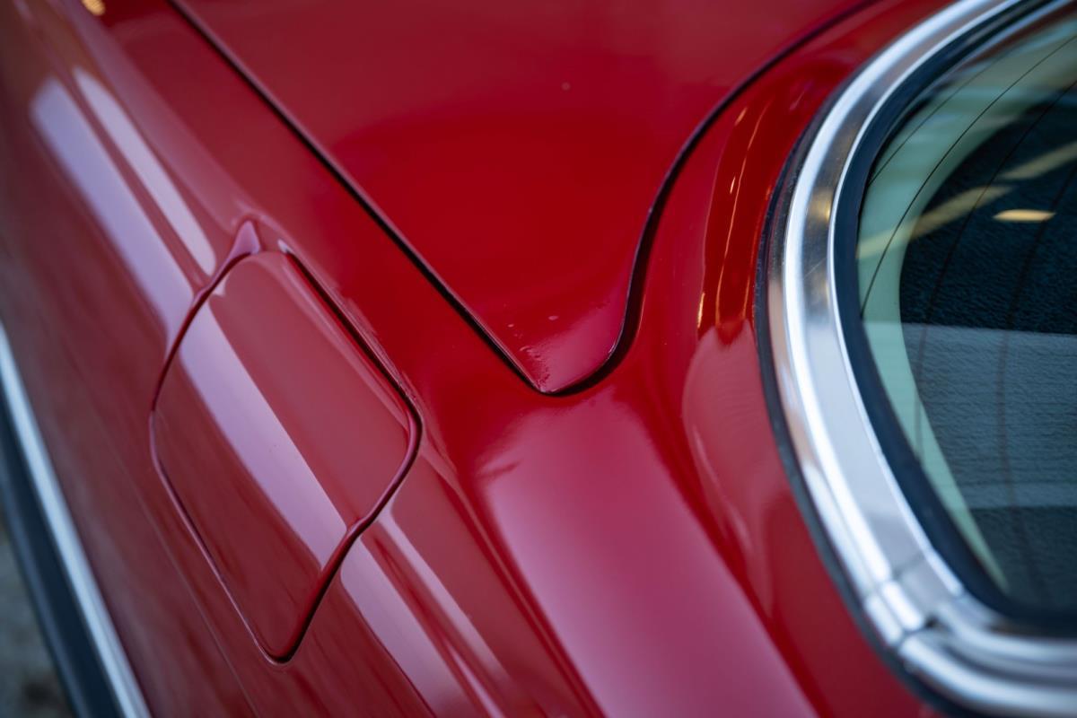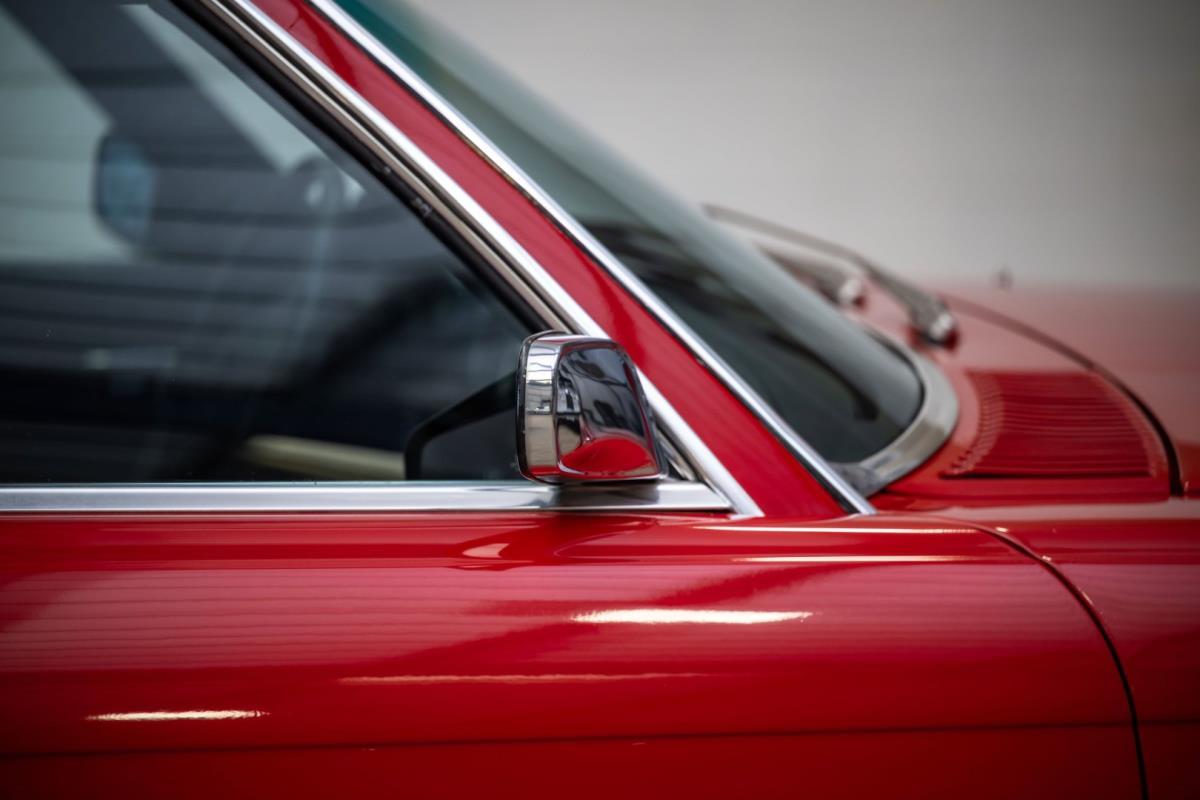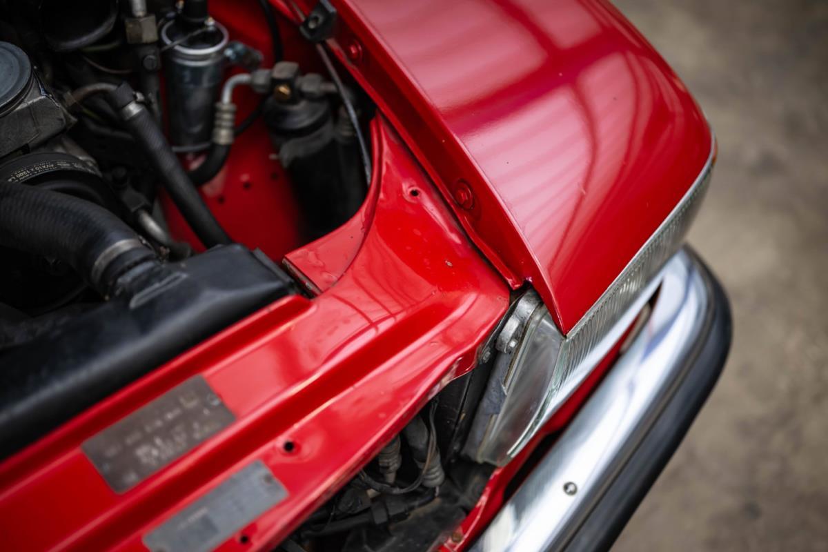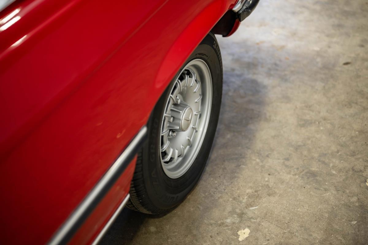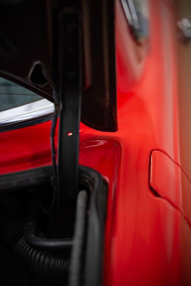 De opnieuw gespoten carrosserie ziet er geweldig uit, nietwaar? Helder en levendig, het werd duidelijk aangebracht door iemand die wist wat hij deed, maar het canvas waarop het werd aangebracht is even indrukwekkend. Met strakke en consistente shutlines komt de legendarische M-B-bouwkwaliteit tot uiting, zelfs na al die jaren. Zoals je zou verwachten na een hoogwaardige overspuitbeurt die sindsdien weinig nut heeft gehad, zijn er geen deuken, deuken of andere beschadigingen die de afwerking kunnen verpesten. De 450SLC was niet afgewerkt met veel chroom, maar wat er wel is, is recht en vrij van roest en putjes. Het schuifdak past goed in de opening en sluit goed af, en er zijn twee goede mistlampen en een set nieuwe kentekenplaten. De originele 14-inch lichtmetalen velgen zijn ook in prima staat. Glanzend en smetteloos, ze zijn uitgerust met een bijpassende set Bridgestone Turanza GR-80 banden. We zullen het nooit beu worden om u te vertellen dat de ervaring leert dat bijpassende banden van hoge kwaliteit een onfeilbaar teken zijn van een zorgzame en mechanisch sympathieke eigenaar die bereid is het juiste bedrag uit te geven aan het juiste onderhoud van zijn auto. Hun aanwezigheid sluit uiteraard de noodzaak van een grondige inspectie niet uit – iets wat de verkoper trouwens op prijs zou stellen – maar het geeft je misschien wel een korte weg naar hun houding ten opzichte van onderhoud. Wat het werk betreft: de rubberen bekleding op de bumpers is geschaafd en wankel, er zit een blaasje in de verf op het schuifdak, een deel van de afdichtingsrubbers is vergaan, er zit een klein chipje aan de bovenkant van het raamglas van het bestuurdersportier, sommige Het glas van de andere kant is bekrast, de lens van de buitenzijde van de achterlamp is geschaafd en er zitten wat oneffenheden in de lakafwerking op de voorspatbord aan de zijkant, de motorkap en onder de achterruit.