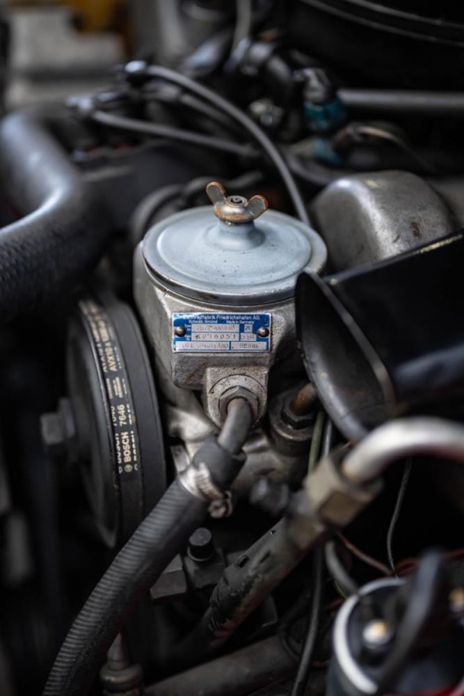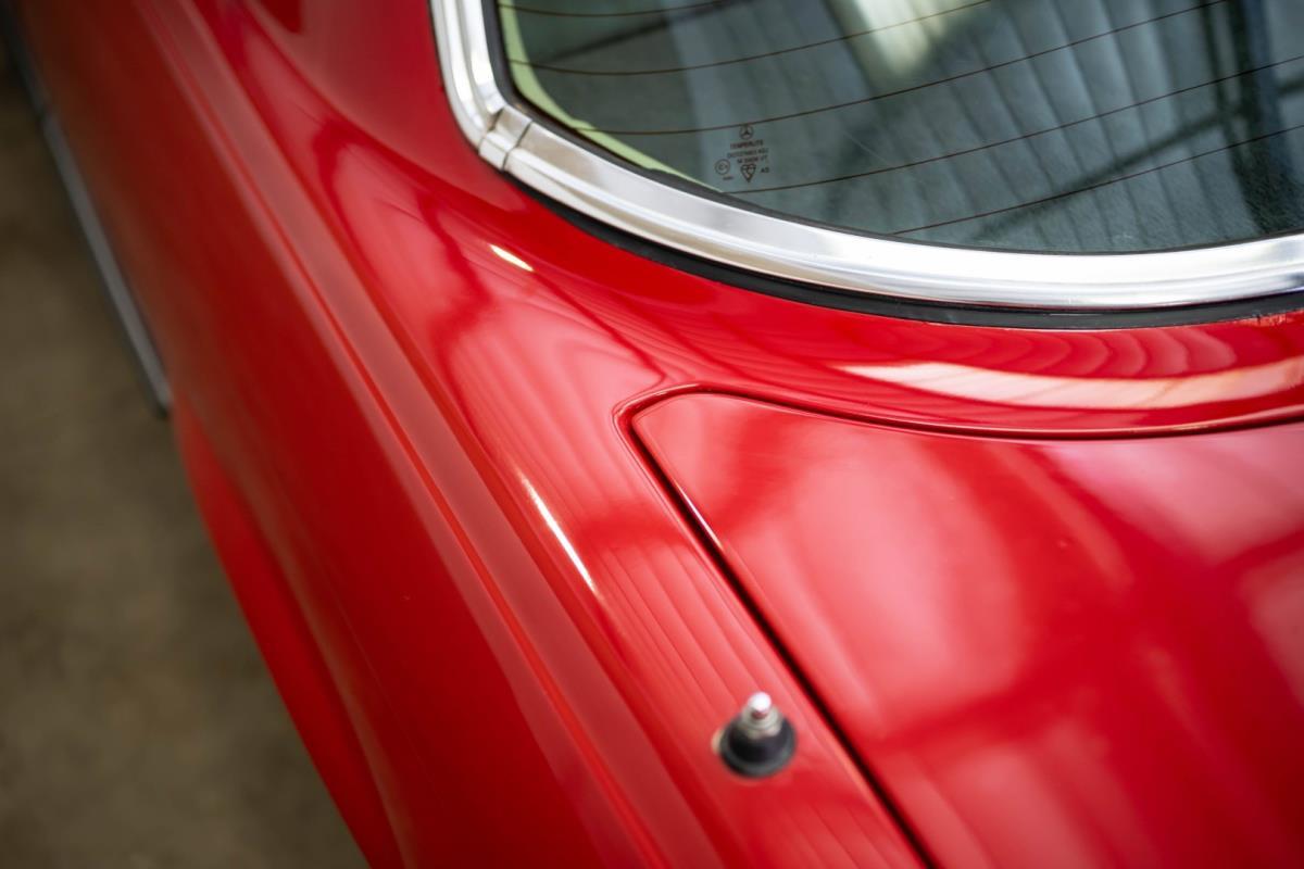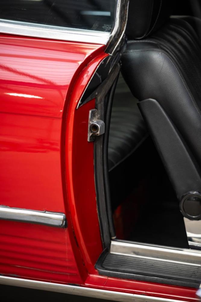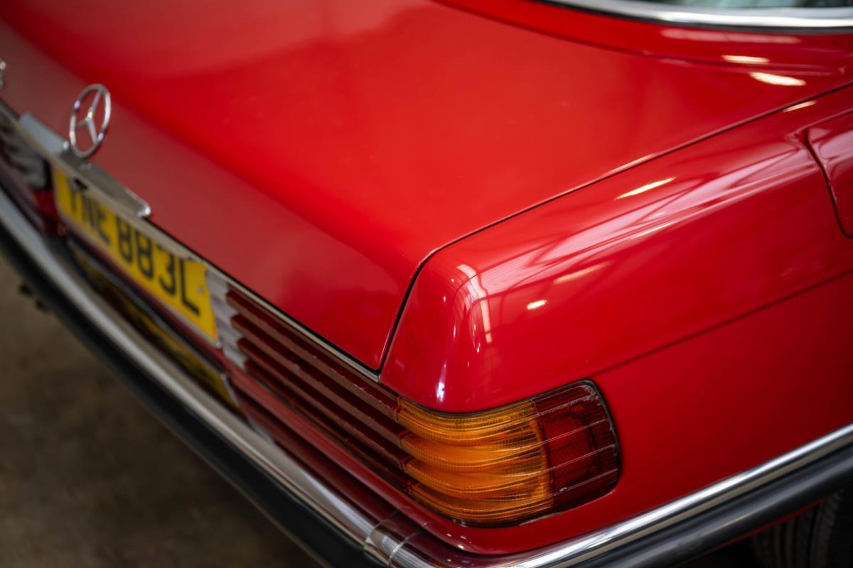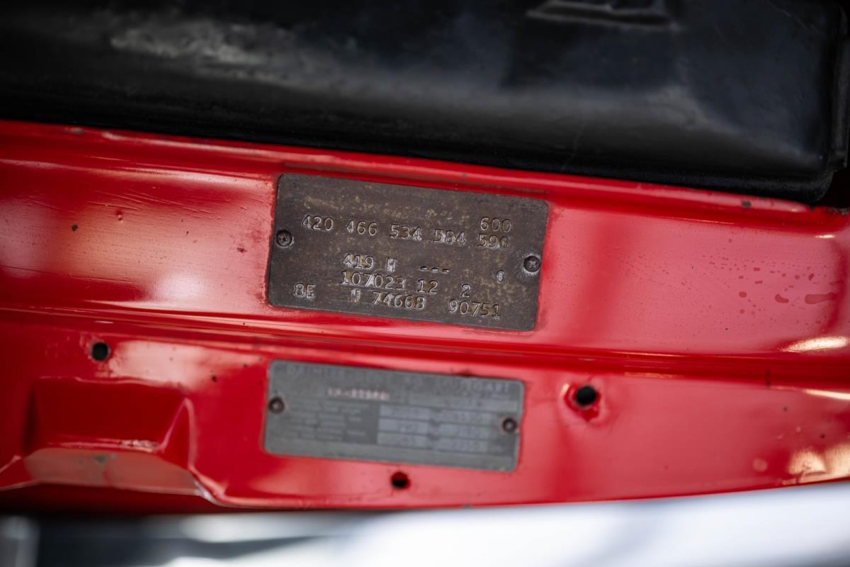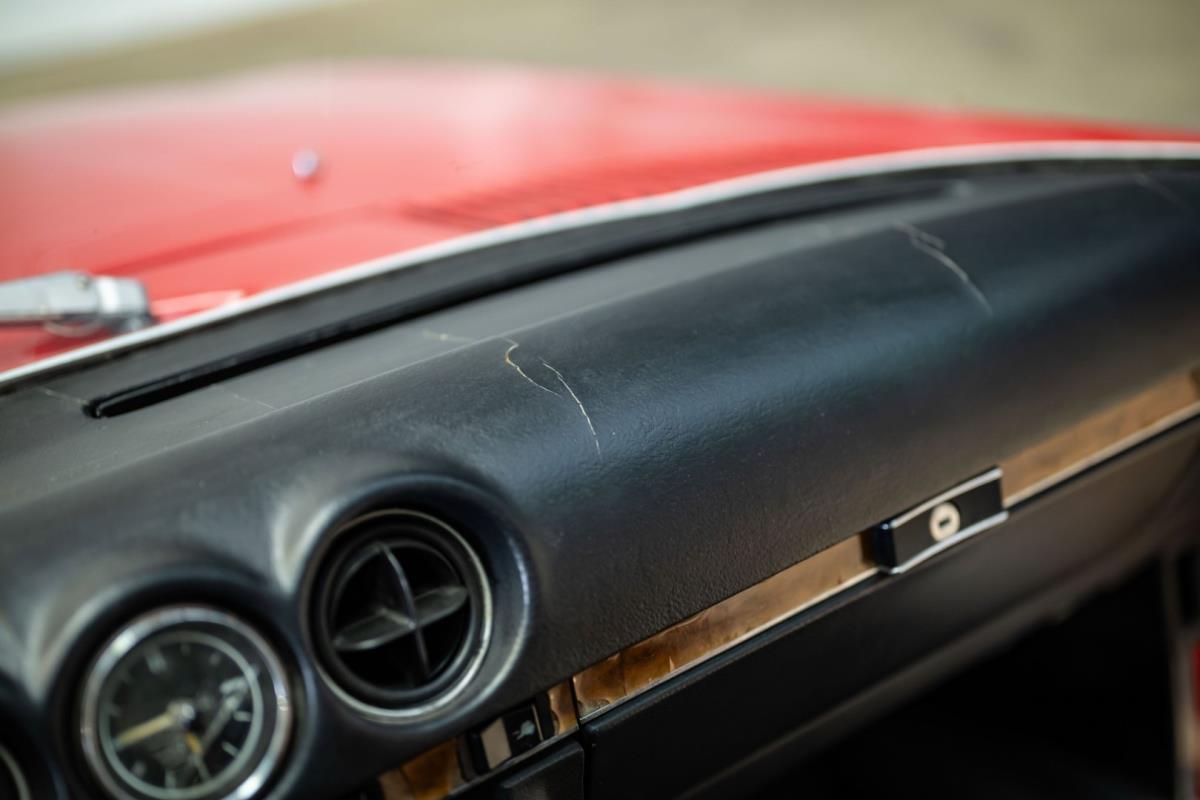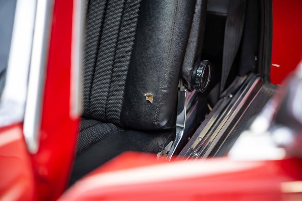 De opnieuw gespoten carrosserie ziet er geweldig uit, nietwaar? Helder en levendig, het werd duidelijk aangebracht door iemand die wist wat hij deed, maar het canvas waarop het werd aangebracht is even indrukwekkend. Met strakke en consistente shutlines komt de legendarische M-B-bouwkwaliteit tot uiting, zelfs na al die jaren. Zoals je zou verwachten na een hoogwaardige overspuitbeurt die sindsdien weinig nut heeft gehad, zijn er geen deuken, deuken of andere beschadigingen die de afwerking kunnen verpesten. De 450SLC was niet afgewerkt met veel chroom, maar wat er wel is, is recht en vrij van roest en putjes. Het schuifdak past goed in de opening en sluit goed af, en er zijn twee goede mistlampen en een set nieuwe kentekenplaten. De originele 14-inch lichtmetalen velgen zijn ook in prima staat. Glanzend en smetteloos, ze zijn uitgerust met een bijpassende set Bridgestone Turanza GR-80 banden. We zullen het nooit beu worden om u te vertellen dat de ervaring leert dat bijpassende banden van hoge kwaliteit een onfeilbaar teken zijn van een zorgzame en mechanisch sympathieke eigenaar die bereid is het juiste bedrag uit te geven aan het juiste onderhoud van zijn auto. Hun aanwezigheid sluit uiteraard de noodzaak van een grondige inspectie niet uit – iets wat de verkoper trouwens op prijs zou stellen – maar het geeft je misschien wel een korte weg naar hun houding ten opzichte van onderhoud. Wat het werk betreft: de rubberen bekleding op de bumpers is geschaafd en wankel, er zit een blaasje in de verf op het schuifdak, een deel van de afdichtingsrubbers is vergaan, er zit een klein chipje aan de bovenkant van het raamglas van het bestuurdersportier, sommige Het glas van de andere kant is bekrast, de lens van de buitenzijde van de achterlamp is geschaafd en er zitten wat oneffenheden in de lakafwerking op de voorspatbord aan de zijkant, de motorkap en onder de achterruit.