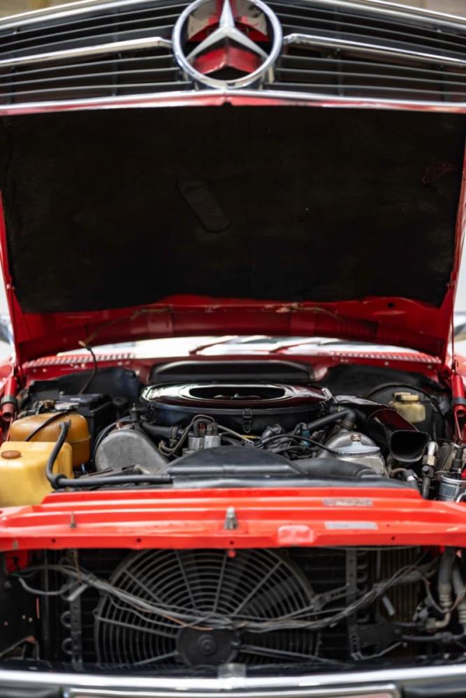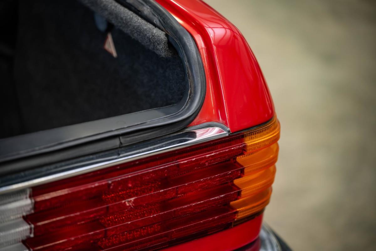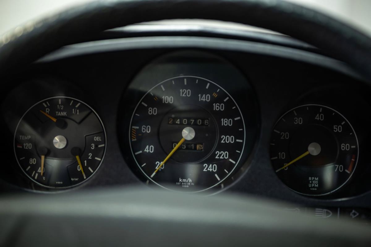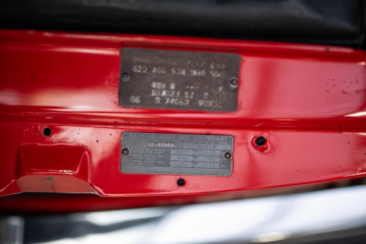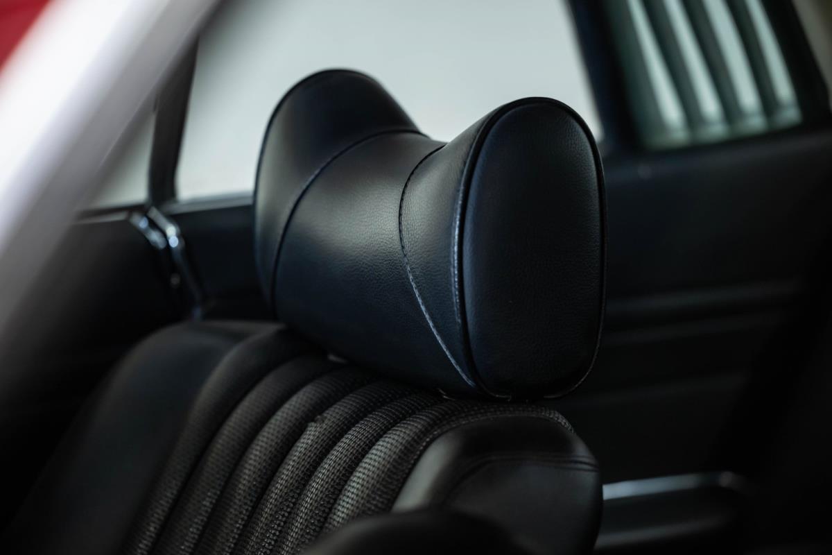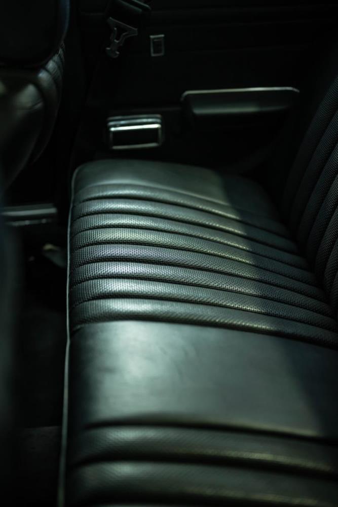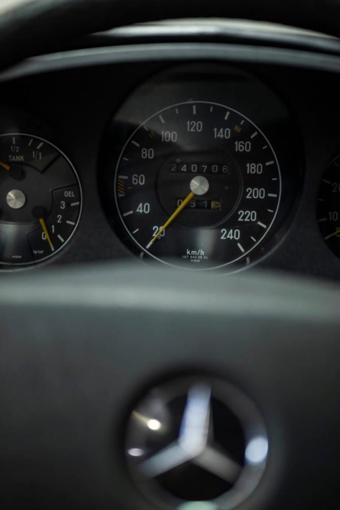 Het zwarte interieur is over het algemeen erg goed, waarbij de stoelen een echt hoogtepunt zijn. Ze zijn nog steeds mooi gepresenteerd, maar hebben de meegevende veerkracht behouden die uniek is voor Mercedes-Benz-auto's uit die periode. De bijpassende deurkaarten zijn ook uitstekend, net als de sierlijsten achteraan en de centrale armsteun vooraan. De achterstoelen zijn zelfs nog beter, omdat ze vrijwel ongemarkeerd zijn. En er is nog meer goed nieuws in de vorm van een Becker Europa-radio in het midden van het dashboard. Als je de krik en het volwaardige lichtmetalen reservewiel uit de kofferbak haalt, zie je daaronder niets anders dan massief metaal, wat goed is om te zien. Wat de gebreken betreft: een deel van het houtfineer is gebarsten en de lak is beschadigd, de bovenkant van het dashboard is gebarsten, de