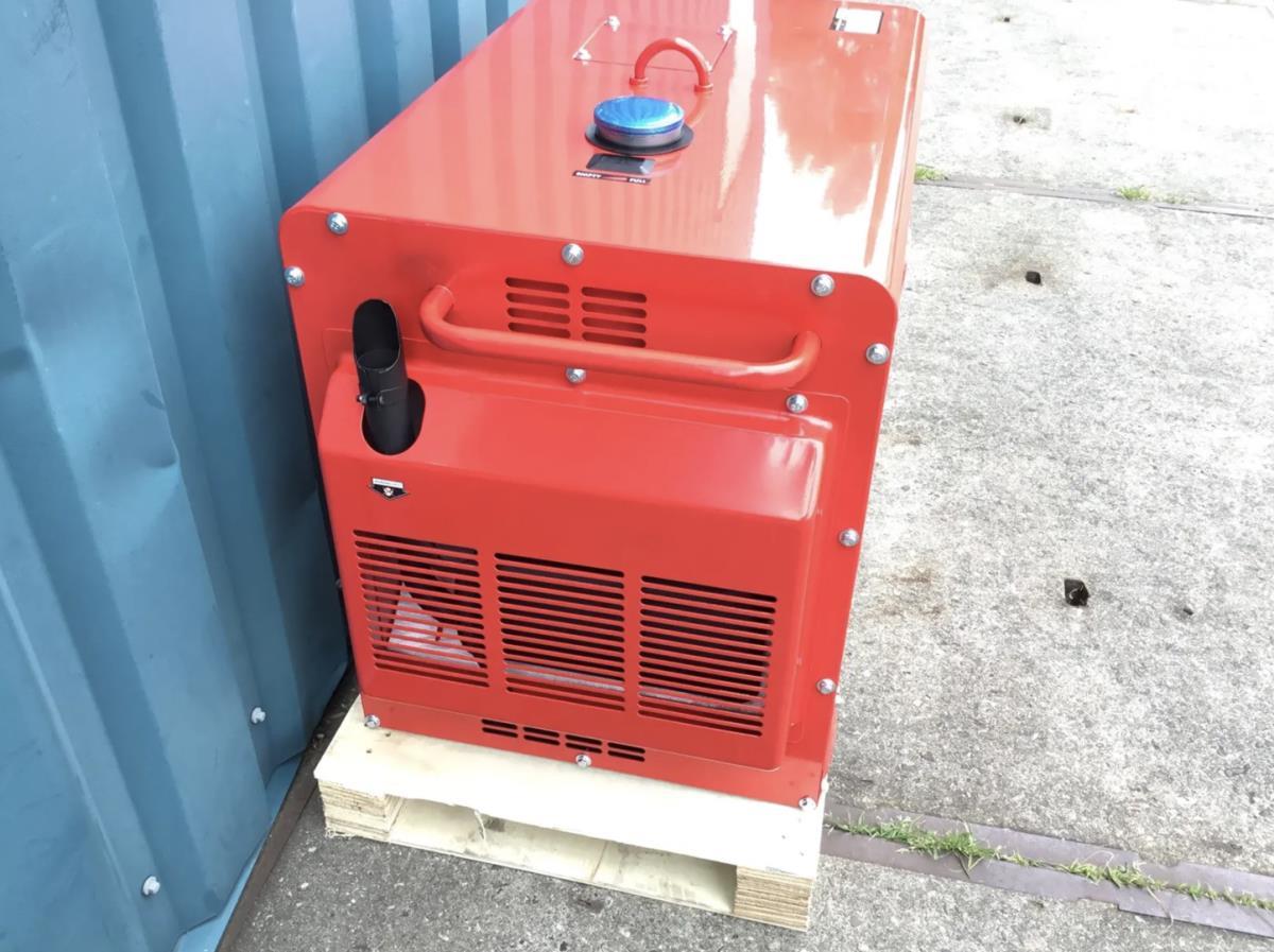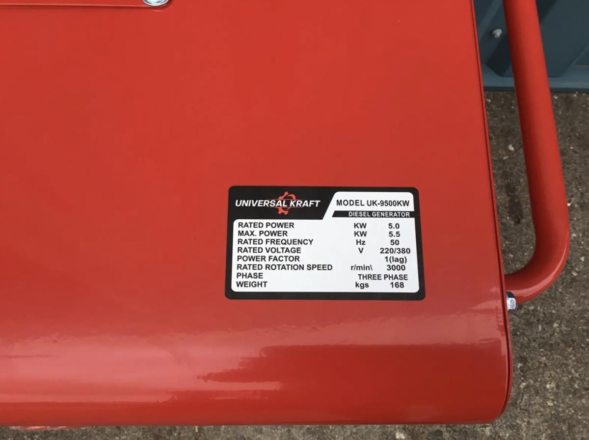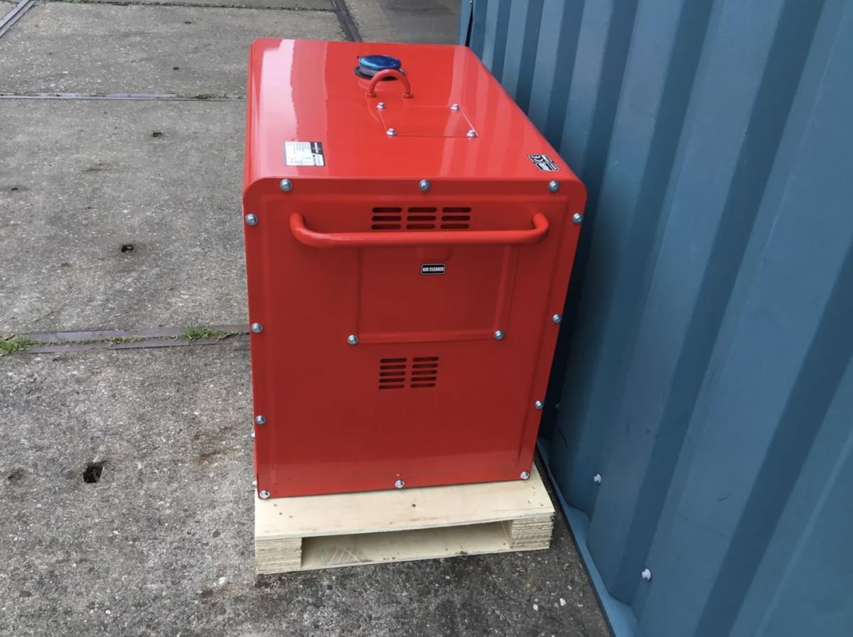 1x380 Volt uitgang; 2x230 Volt uitgang; 1x12 Volt uitgang; 12,5 liter diesel tank; 1,65 liter olie tank; met toebehoren; mobiel op wielen met beschermkappen; met hijsoog; ongebruikt en verpakt