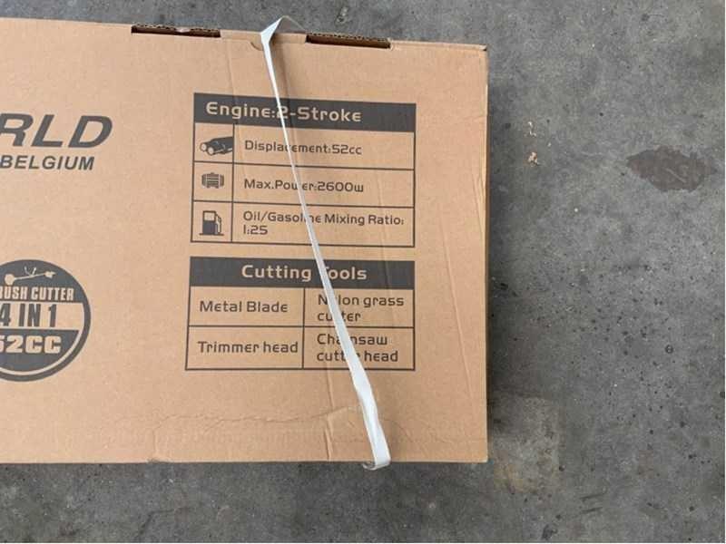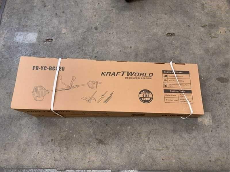 52cc benzinemotor; max speed 6.500 rpm; brandstof tankinhoud 1,2 liter; met draadkop, snijkop, kettingzaag en heggenschaar; met handleiding; ongebruikt en verpakt